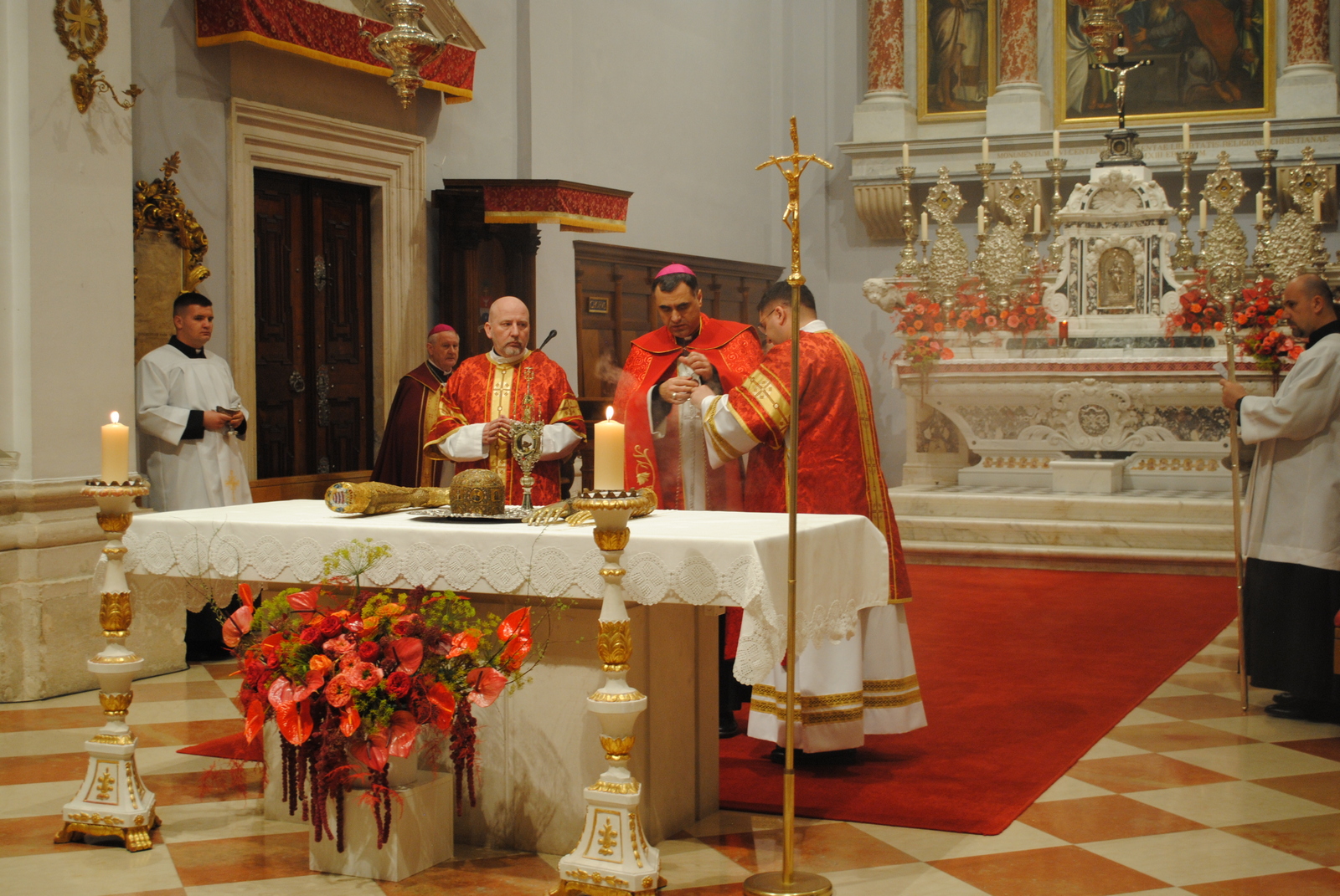 Prigodnu propovijed održao je predvoditelj trodnevnice fra Krunoslav Kocijan, član Hrvatske franjevačke provincije sv. Ćirila i Metoda. Liturgijsko pjevanje u dva kora predvodili su Mješoviti katedralni zbor pod vodstvom Petre Potrebica i zbor redovnica i drugih pjevača kojima je dirigirao Miho Bošković. Za vrijeme molitve na oltaru su bile izložene moći sv. Vlaha.