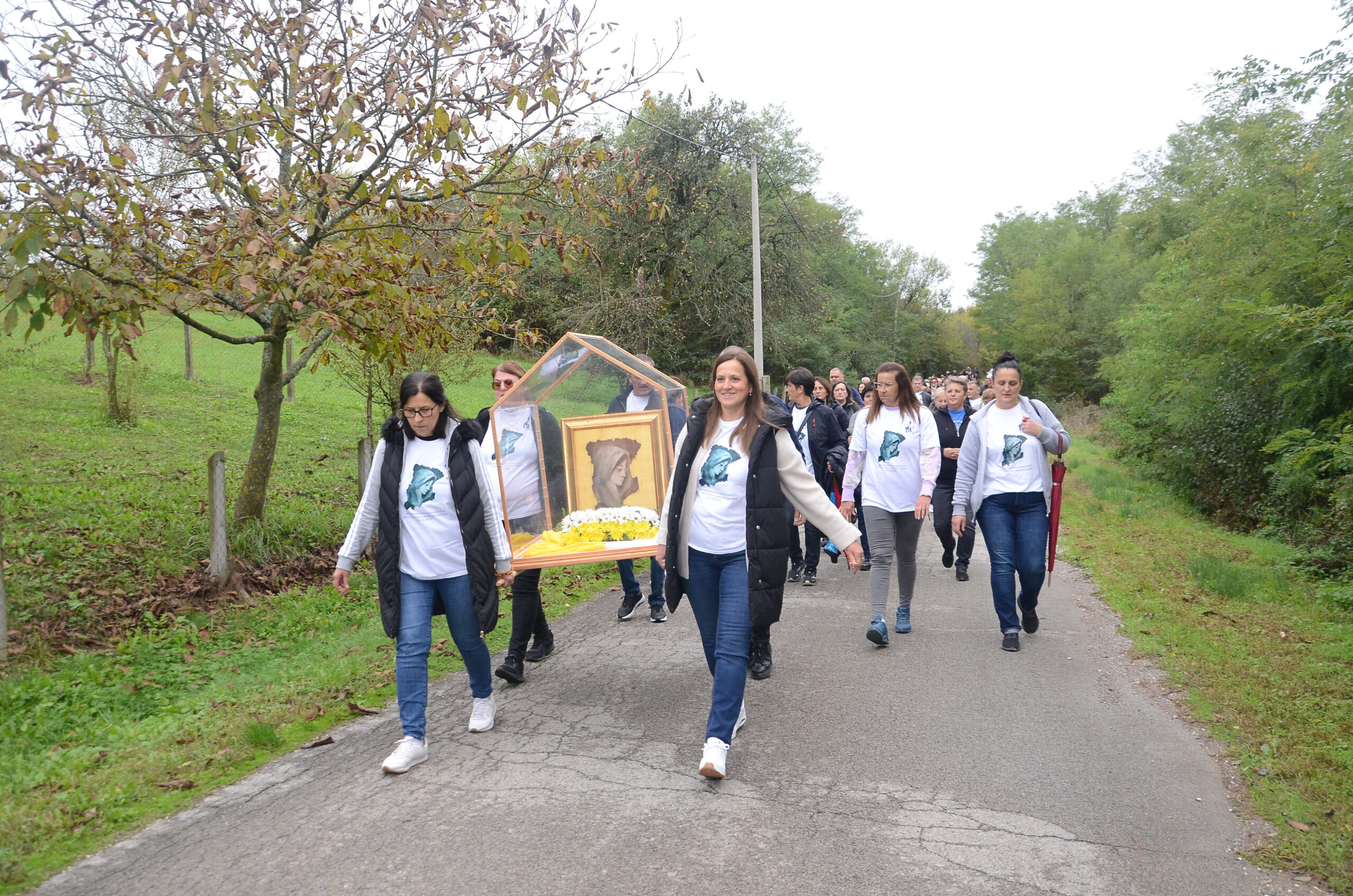 Hodočašće je započelo u jutarnjim satima ispred župne crkve procesijom sa zavjetnom slikom svih povratnika u Bosansku Posavinu – „Lice Neumrle Majčine Ljubavi“, koja je inače izložena u toj crkvi na javno čašćenje. Vjernici su hodajući puteljcima župe molili otajstva Gospine krunice, koje je predvodio kancelar Vrhbosanske nadbiskupije preč. Mladen Kalfić.