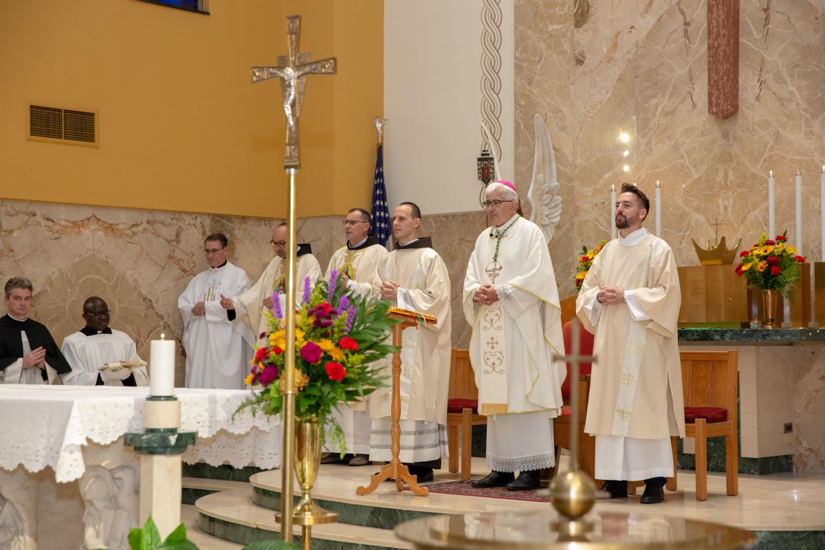 Na početku misnog slavlja nazočne je u ime domaćina pozdravio fra Gabriel Škibola, tajnik Kustodije i župnik župe Presvetoga Srca Isusova. Uputio je riječi dobrodošlice biskupu Majiću, kustosu fra Nikoli Pašaliću, predstavniku Mundelein Seminaryja Rev. Johnu Guthrieju, franjevcima iz Marytowna, bogoslovima te roditeljima ređenika. Istaknuo je da ređenje predstavlja duhovni plod cijele franjevačke obitelji i hrvatske zajednice u Sjedinjenim Američkim Državama.