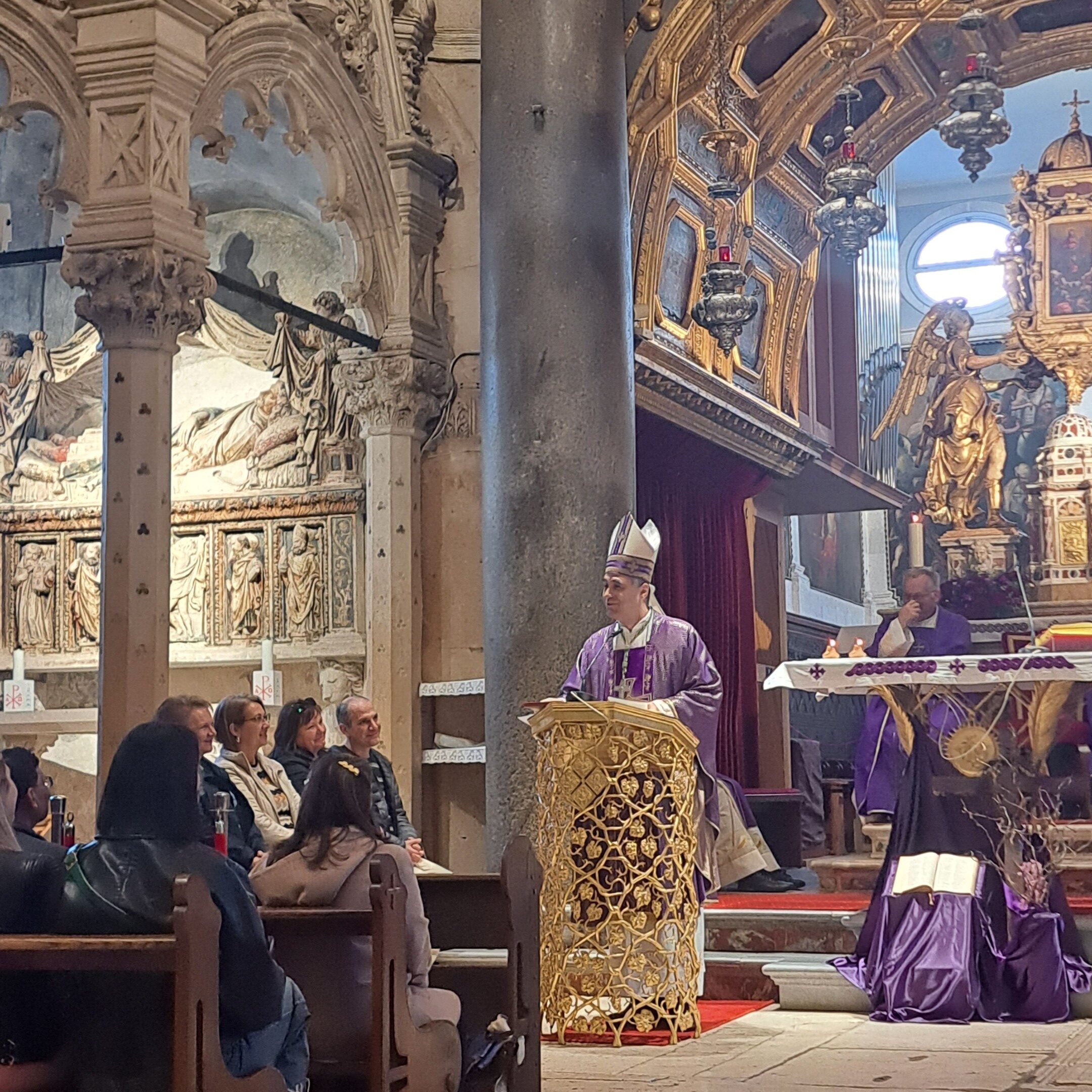 Sudionici skupa uputili su se zatim u razgledavanje Riznice katedrale i u katedrali sv. Dujma sudjelovali na euharistijskom slavlju koje je predvodio predsjednik Vijeća HBK-a za katolički odgoj i obrazovanje dubrovački biskup Roko Glasnović.