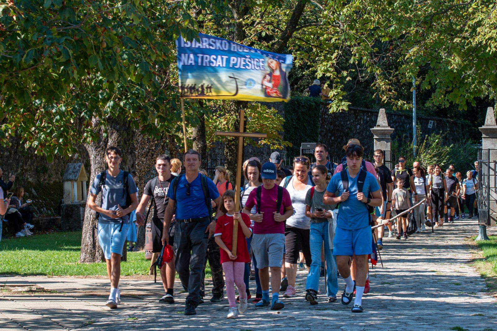 Započinjući svoju propovijed, biskup Štironja je pozdravio sve nazočne hodočasnike iz Istre kao i iz ostalih dijelova Hrvatske, a napose hodočasnike pješake koji su u četvrtak u podne krenuli iz Pazina i nakon dva dana pješačenja stigli na Trsat.
