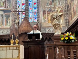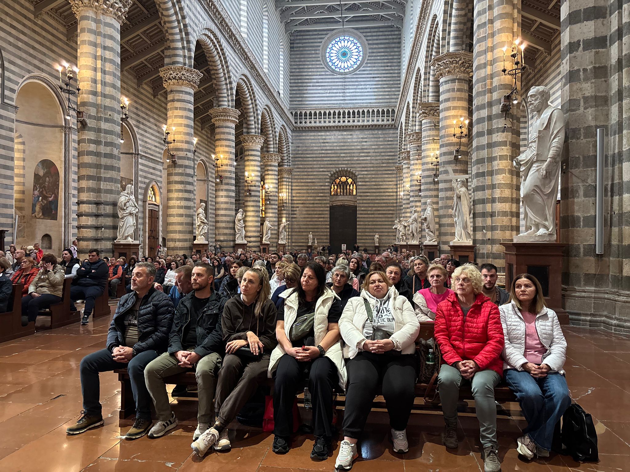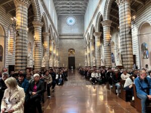 Po dolasku u Orvieto slavljena je misa u katedrali Uznesenja Blažene Djevice Marije. Misu je predvodio biskup Medo, a propovijedao je vlč. Nikola Prša, koji je u propovijedi istaknuo važnost poniznosti, blagoslovljenih susreta i trajnog duhovnog rasta nakon hodočašća.