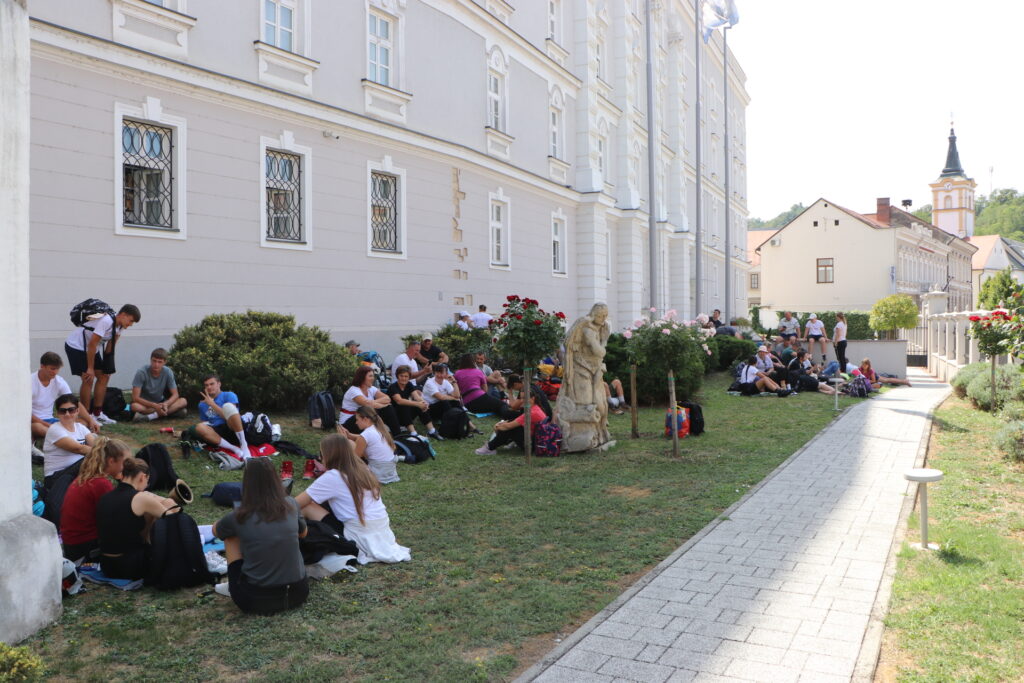 Oko podneva stigli su u Požegu gdje su se odmorili i okrijepili. U 14 sati okupili su se u crkvi sv. Lovre – zaštitnika Požeške biskupije, gdje su im se pridružili pješaci iz požeškog kraja. Hodočasnike je pozdravio i blagoslovio Marijan Pavelić, rektor crkve. U kratkom nagovoru potaknuo ih je da tijekom svoga hoda pronađu vremena za produbljenje vlastitog odnosa s Bogom bez kojega bi dugo pješačenje moglo ostati prazno.
