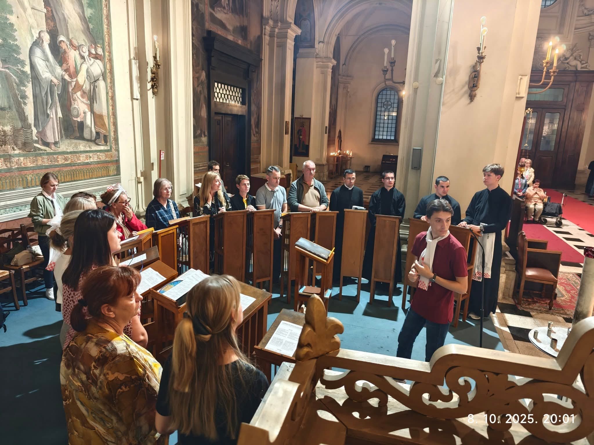 Vladika Milan Stipić služio je arhijerejsku božansku liturgiju sv. Ivana Zlatoustog zajedno sa svećenicima i đakonima koji sudjeluju na hodočašću kao i sa svećenicima toga zavoda.