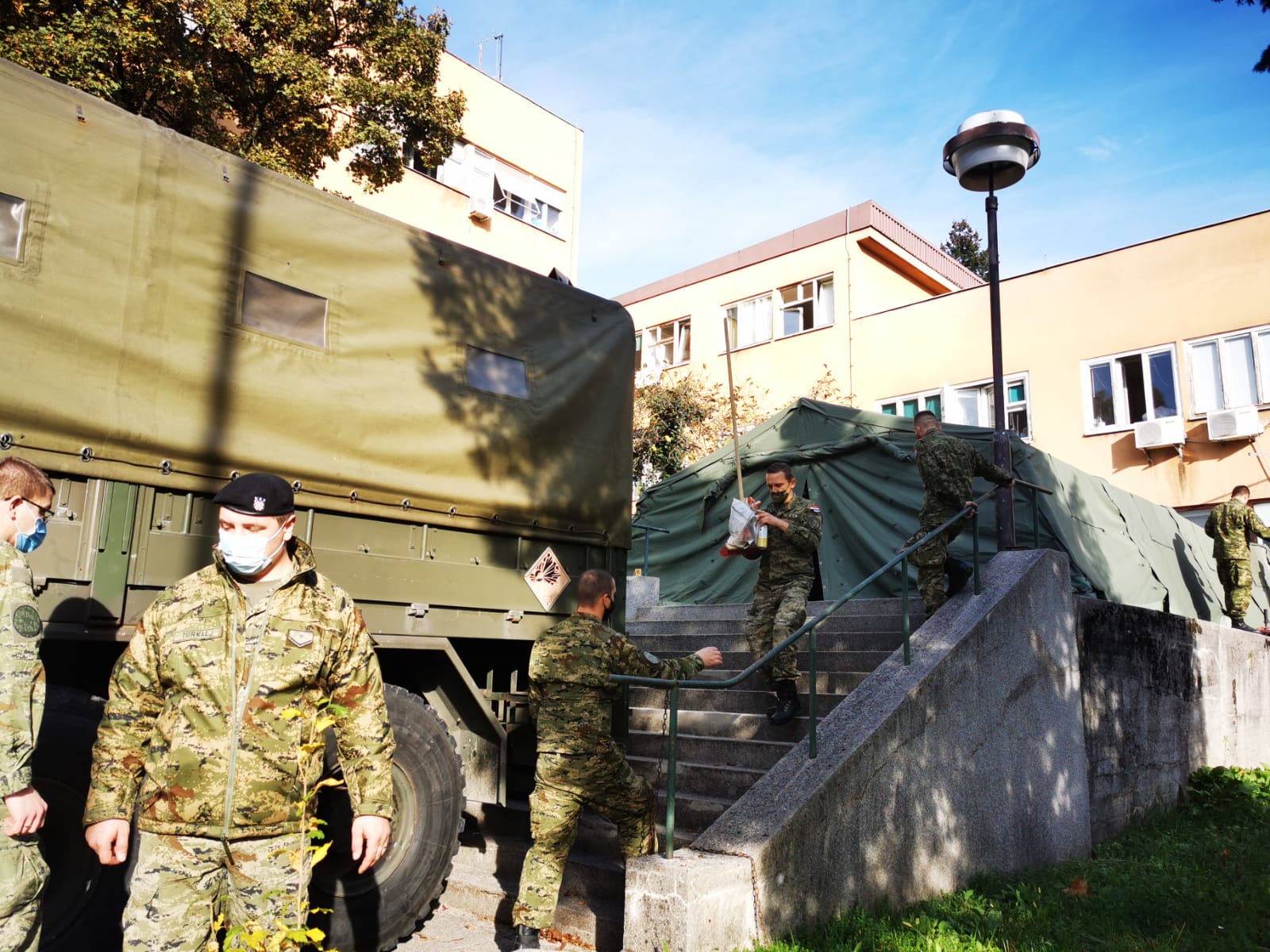 Pripadnici Hrvatske vojske, Bojne za opću potporu, Zapovjedništva za potporu, u ponedjeljak 2. studenoga pružili su potporu Klinici za infektivne bolesti „Dr. Fran Mihaljević“ u Zagrebu, postavljanjem dodatnih šest polja šatora tipa M70 u svrhu pružanja pomoći institucijama civilnog društva u borbi protiv koronavirusa.