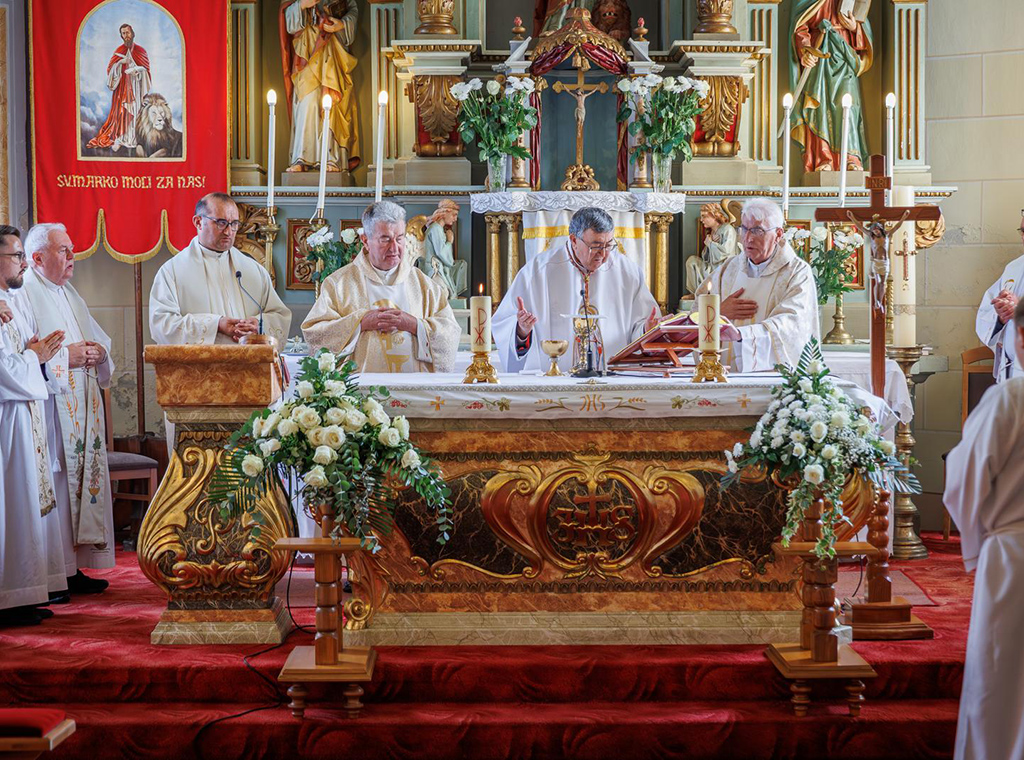 Prije početka euharistije kardinal Puljić blagoslovio je Gospin zid ispred župne crkve. Potom su se nazočni uputili prema crkvi gdje je misu slavio kardinal Puljić u koncelebraciji desetak svećenika, uglavnom iz Štrigovskog dekanata, ali i gostiju iz Banjolučke biskupije predvođenih mons. Ivicom Božinovićem.