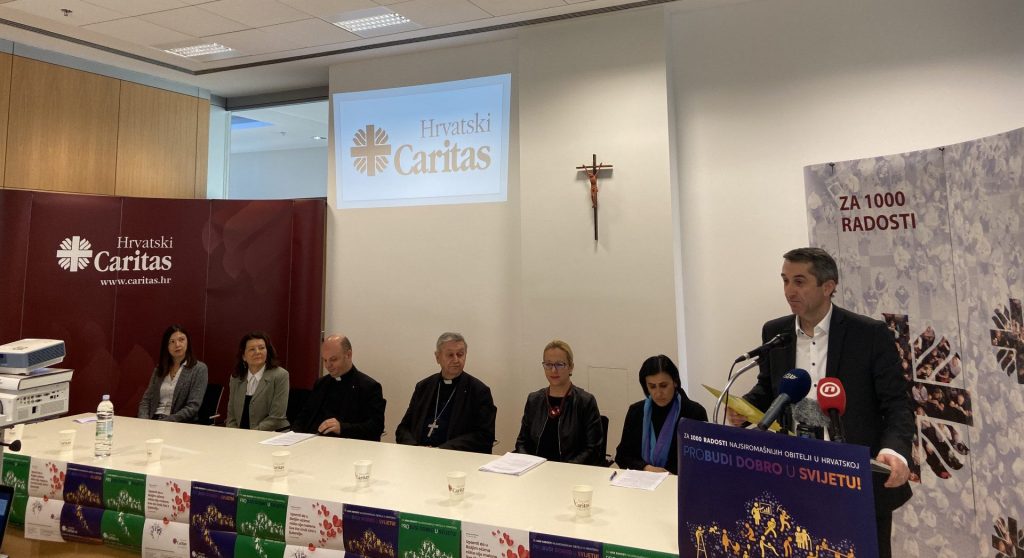 U zgradi Hrvatske biskupske konferencije u Zagrebu, na konferenciji za novinare, u srijedu 11. prosinca Hrvatski Caritas predstavio je nacionalni program „Za 1000 radosti – probudi dobro u svijetu“ te najavio 18 godinu za redom tradicionalnu humanitarnu prodaju božićnih drvaca na Trgu bana Jelačića u Zagrebu koja će se održati u subotu 14. prosinca kako bi se prikupila pomoć za siromašne obitelji diljem Hrvatske.
