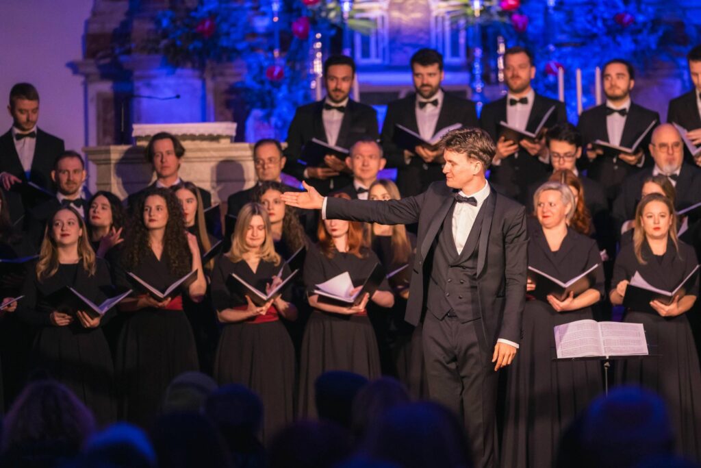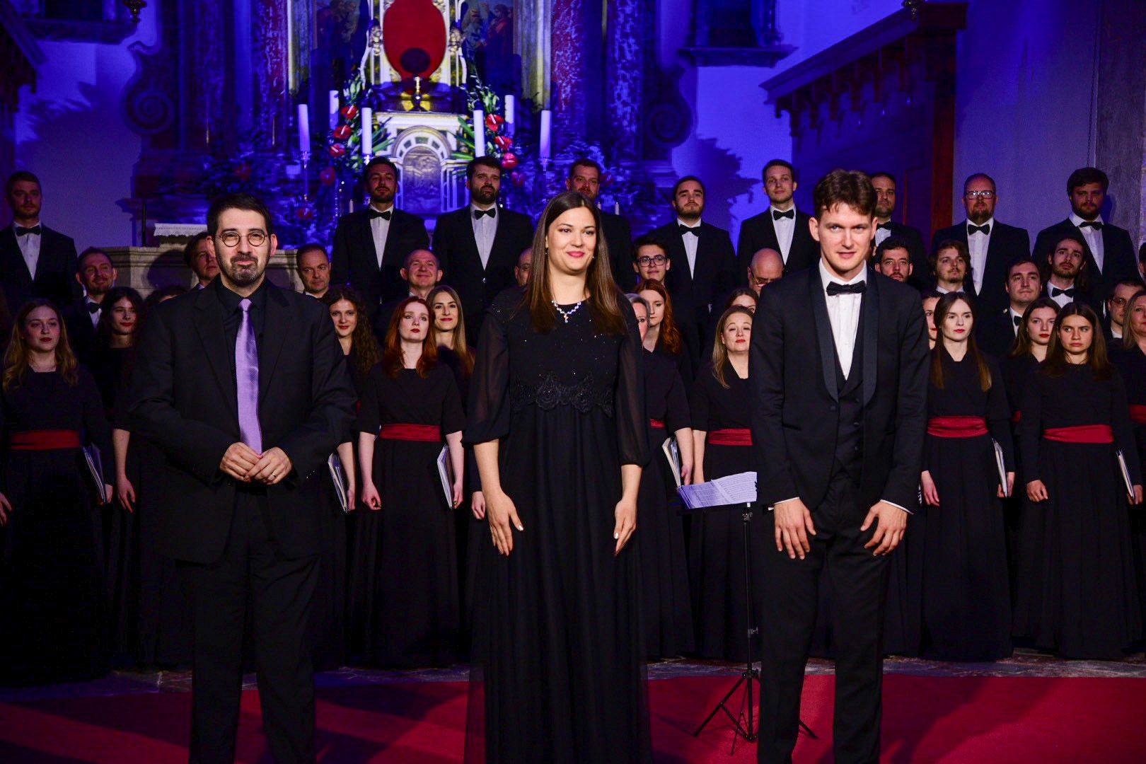 Nastupilo je sedamdeset pjevača. Dirigent je bio Ivan Šćepanović, a za orguljama Pavao Mašić. Na koncertu su izvedena djela: W. A. Mozart: Requiem u d-molu, K. 626, E. Grieg: Ave Maris Stella, Jan Katona: Vattene, vita, va, F. Mendelssohn Bartholdy: Richte mich, Gott, J. Brahms: Ein deutsches Requiem, G. Rossini: Stabat Mater – Quando corpus i B. Papandopulo: Svet (iz Hrvatske mise u d-molu).