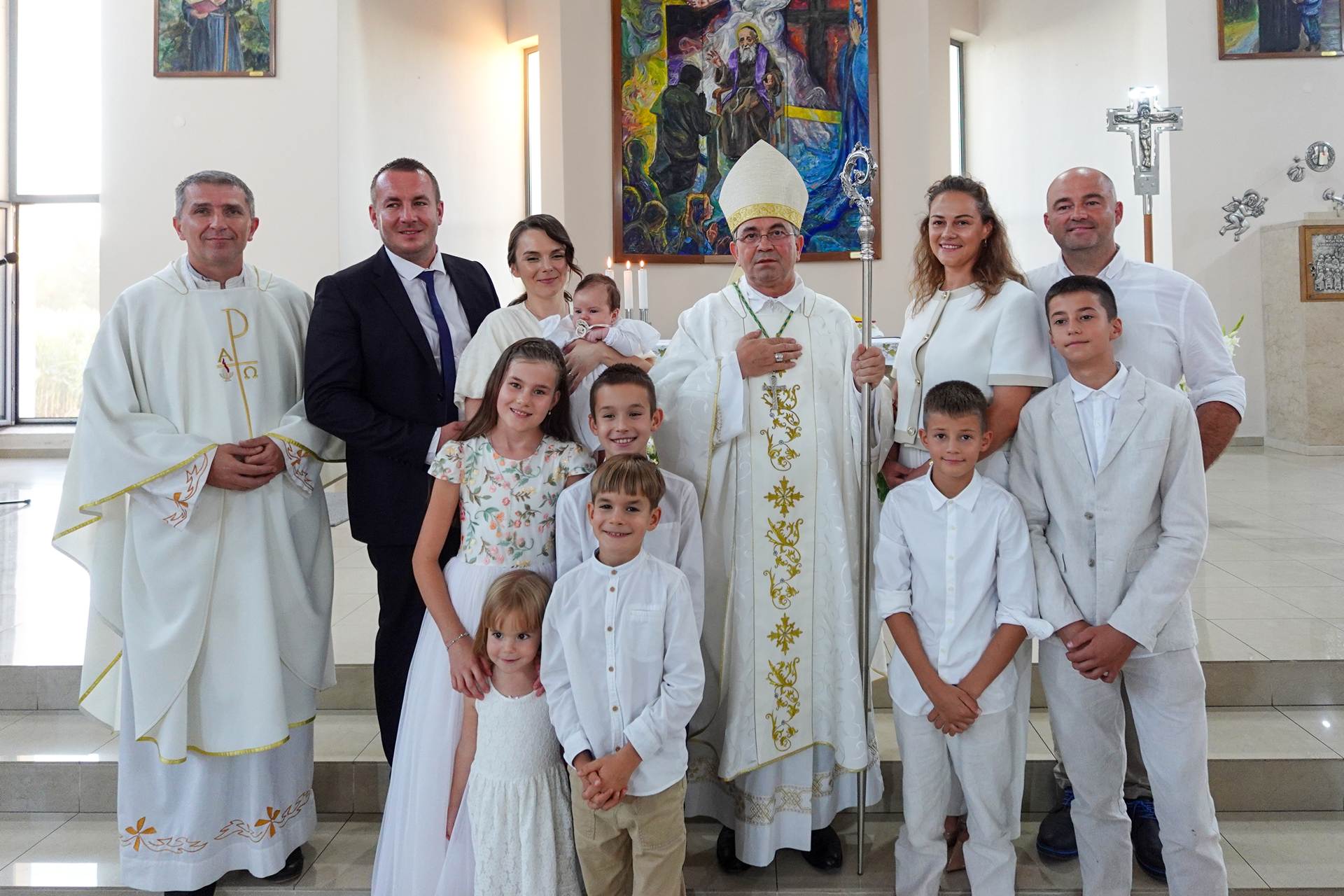 Krštenje petog djeteta roditelja Biondić u virovitičkoj Župi sv. Leopolda Mandića