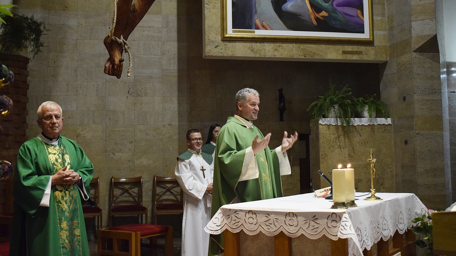 Središnje euharistijsko slavlje predvodio je domaći župnik p. Ilija Sudar, a posluživao je trajni đakon Ivan Tutiš, koji je ujedno izrekao homiliju. Na euharistijskom slavlju pjevao je zbor mladih, a animaciju pokretima i gestama vodili su članovi Zajednice „Vjera i svjetlo“ iz Vinkovaca. Evanđelje su oživjeli i slikovito prikazali članovi Zajednice „Vjera i svjetlo“ iz Vukovara.