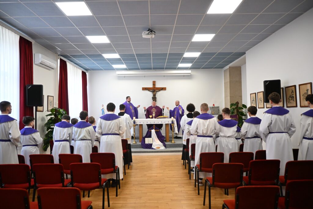 Susret je započeo u prijepodnevnim satima dolaskom u sjemenište i kratkom okrjepom, tijekom koje su se ministranti upoznali sa sjemeništarcima i osjetili ozračje doma u kojem mladići razlučuju svoj svećenički poziv. Nakon uvodnog druženja uslijedilo je središnje slavlje dana – sveta misa u privremenom bogoslužnom prostoru svečane sjemenišne dvorane.