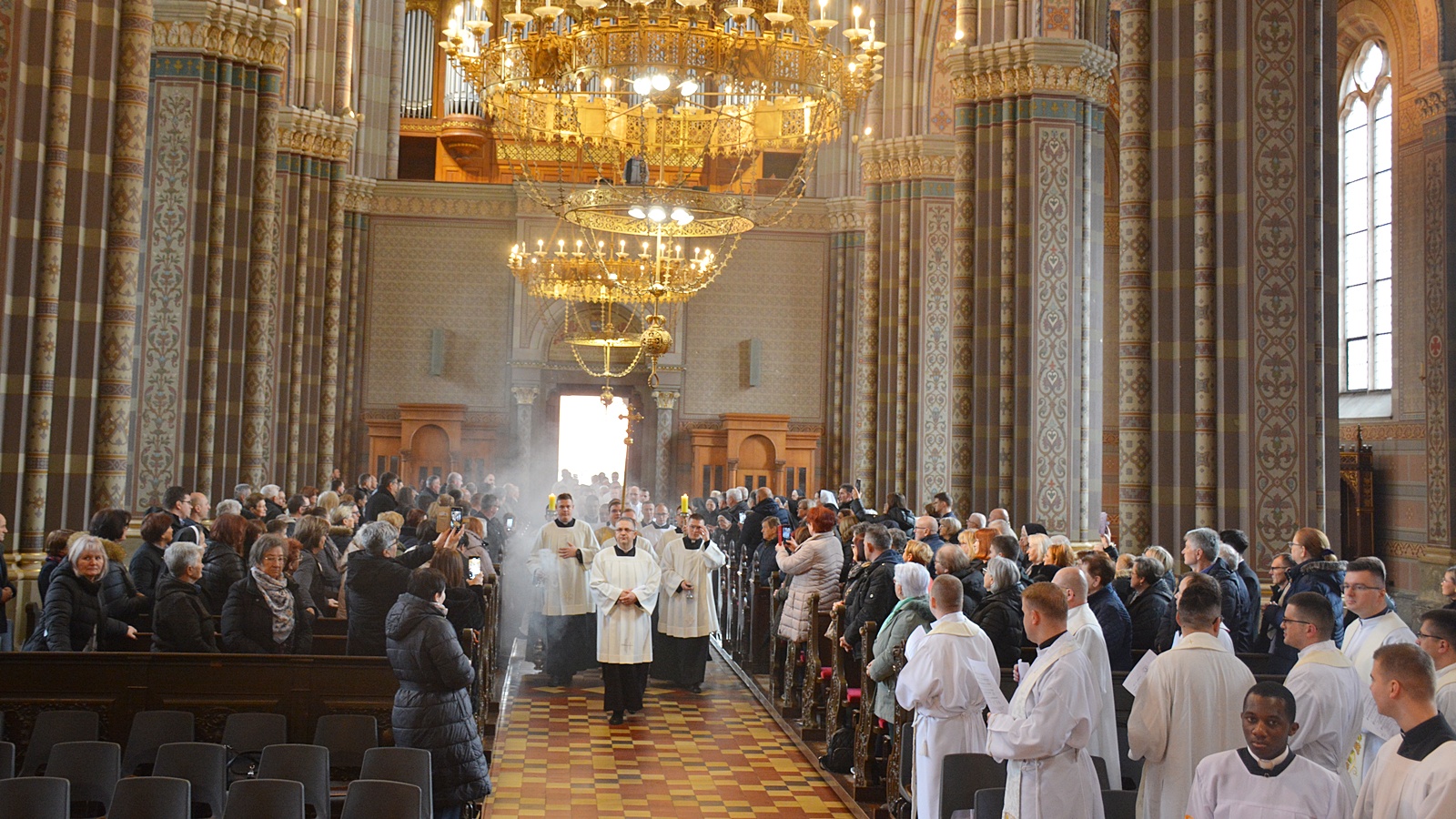 Svečanu procesiju biskupa, svećenika, đakona i bogoslova s križem na čelu predvodio je katedralni ceremonijar vlč. mr. Dario Hrga, a kretala se od katedrale kroz dvorište Nadbiskupskog doma preko Trga J. J. Strossmayera da bi ušla u katedralu.