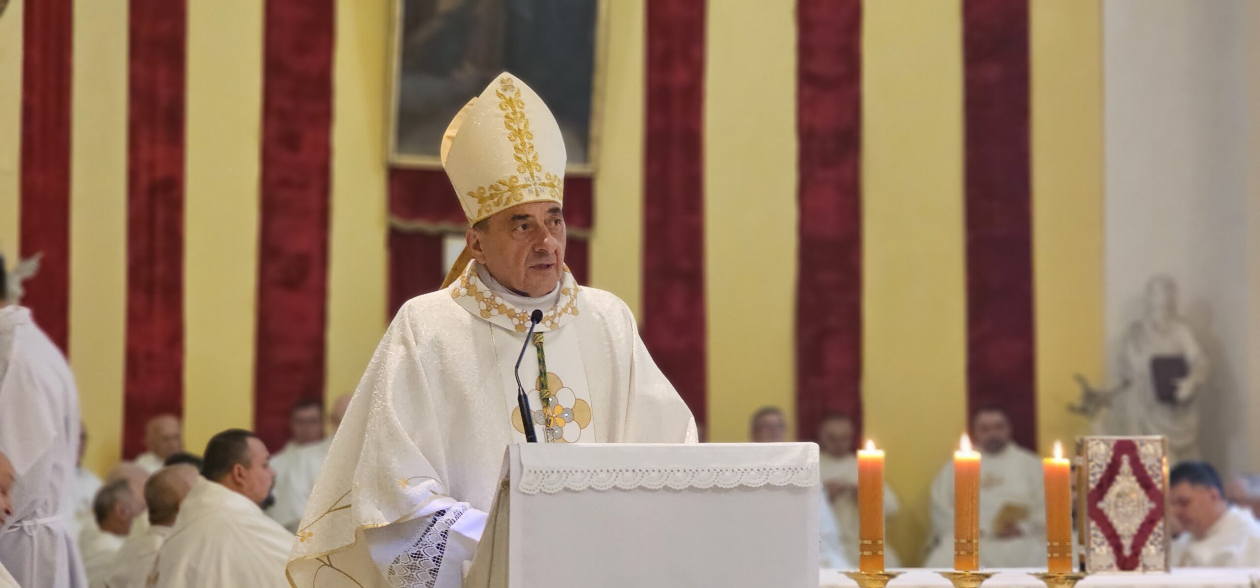 Posebno je čestitao svećenicima koji ove godine slave jubileje. Mons. Mile Pecić slavi 60. obljetnicu svećeništva, preč. Mile Šajfar 50. obljetnicu, vlč. Ivica Miškulin i preč. Stjepan Zeba 40. obljetnicu, vlč. Dino Rupčić i preč. Šimo Božić 15. obljetnicu te preč. Mišel Grgurić 10. obljetnicu.