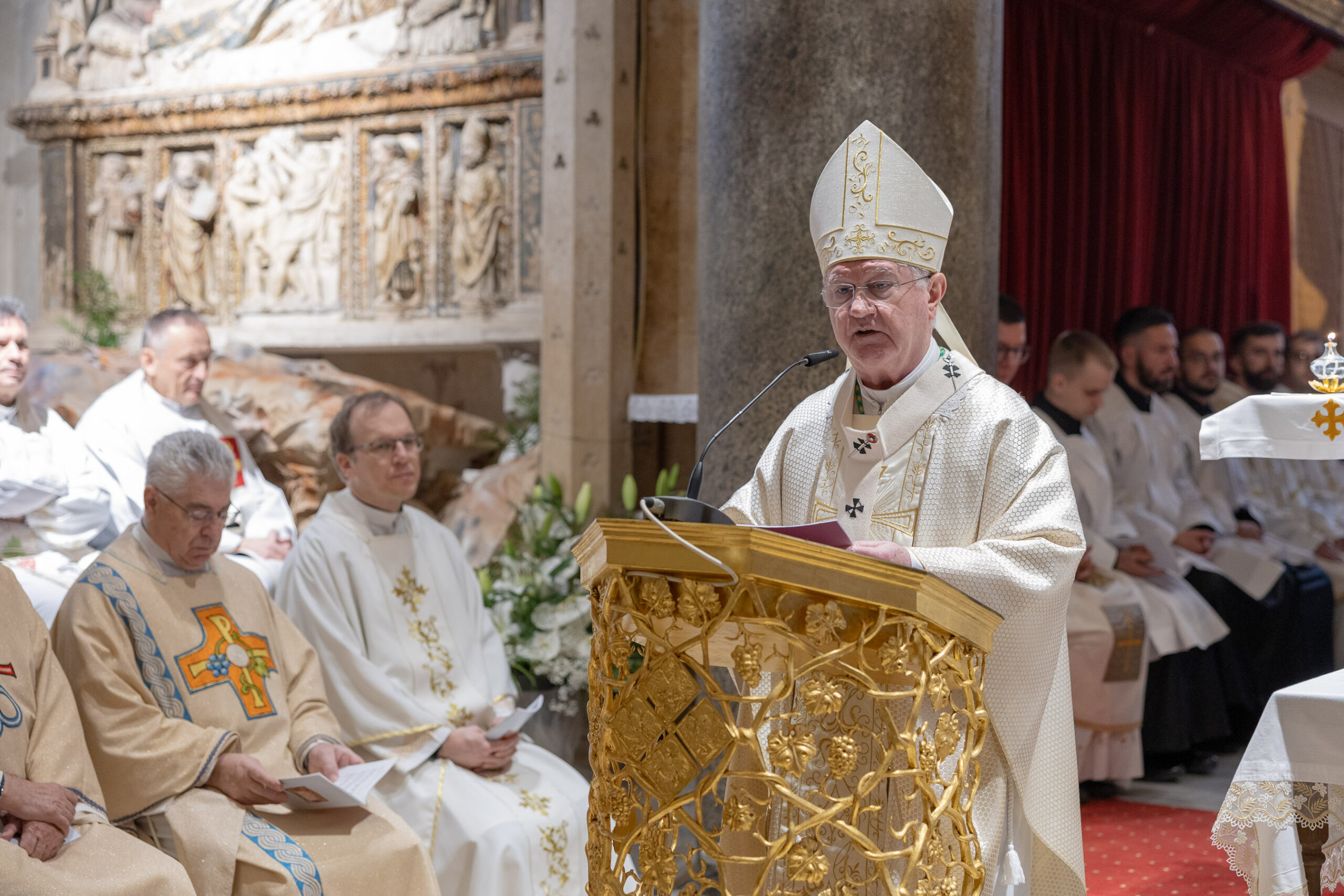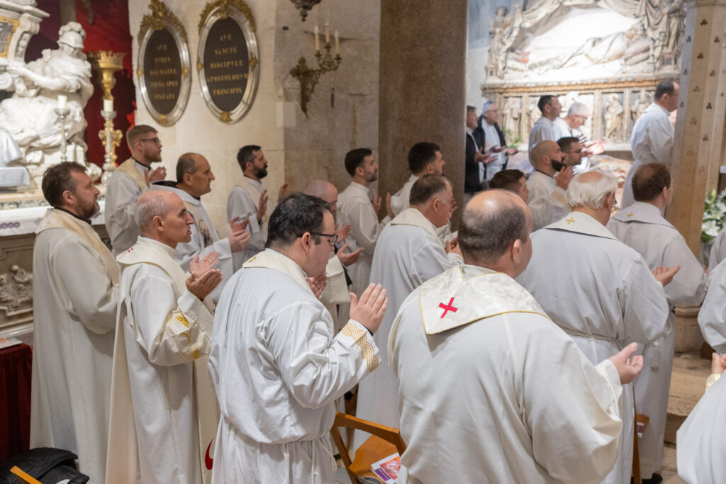 U završnom dijelu propovijedi nadbiskup se obratio svećenicima, podsjetivši ih na smisao njihova poziva koji izvire iz Kristova poslanja i pomazanja Duhom Svetim. Naglasio je kako pomazanje nije čast, nego poslanje koje uključuje križ i služenje, poručivši da su svećenici „pomazani ne zato da budu iznad drugih, nego da budu za druge“. Istaknuo je kako se svećenička vjernost ne mjeri savršenošću, nego ustrajnošću i spremnošću na obraćenje, upozorivši na opasnost rutine u svetim stvarima i zatvorenosti prema bližnjemu. Zaključio je poticajem na dosljedan život i služenje, istaknuvši kako Crkva danas ne treba one koji se oslanjaju na službu, nego one koji svojim životom svjedoče evanđelje i ostaju vjerni pozivu unatoč slabostima i izazovima.
