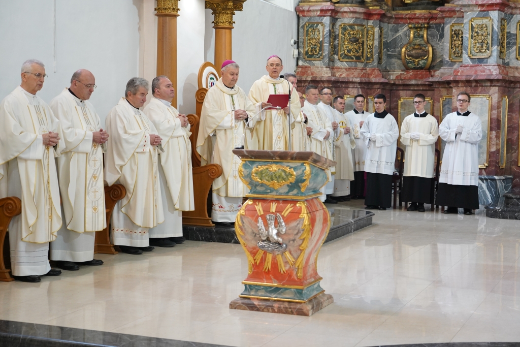 60. obljetnicu svećeništva ove godine slavi preč. Mijo Horvat. 50. slave svećenici preč. Dragutin Bogadi, preč. Mirko Horvatić, preč. Juraj Kopjar, preč. Leonard Markač, preč. Ivan Mikulan, fra Mijo Hrman i fra Petar Žagar. 25. obljetnicu svećeništva slave vlč. Zorislav Šafran i preč. Vjekoslav Vidaček. Izrazivši im zahvalnost za njihovo svećeničko služenje, biskup ih je darivao misnicama, a srebrne jubilarce časoslovima. Pozdravio je i ovogodišnje krizmanike koji su sudjelovali sa svojim župnicima i koji su pozvani posvećena ulja unijeti u crkvu prije Mise Večere Gospodnje u svoje župne zajednice.