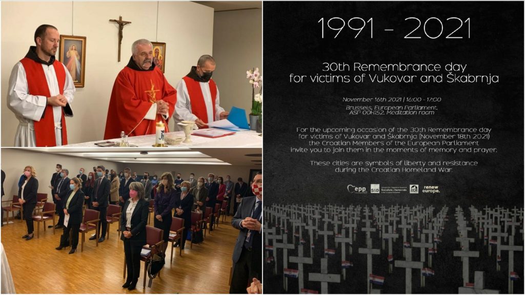 Dan sjećanja na žrtve Domovinskog rata i Dan sjećanja na žrtvu Vukovara i Škabrnje obilježen je u utorak 16. studenoga euharistijskim slavljem u zgradi Europskog parlamenta u Bruxellesu, priopćili su iz Ureda za odnose s javnošću Europske pučke stranke (EPP).