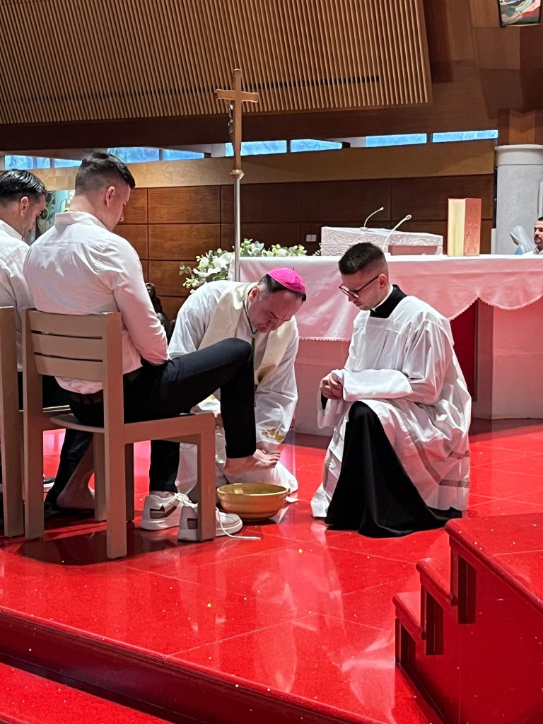 Biskup je nakon homilije oprao noge dvanaestorici muškaraca, kao što je to učinio Isus svojim učenicima na posljednjoj večeri, pokazavši primjer služenja i ljubavi. Dvanaestorica muškaraca predstavljali su apostole i stigli su iz šest mostarskih župa.