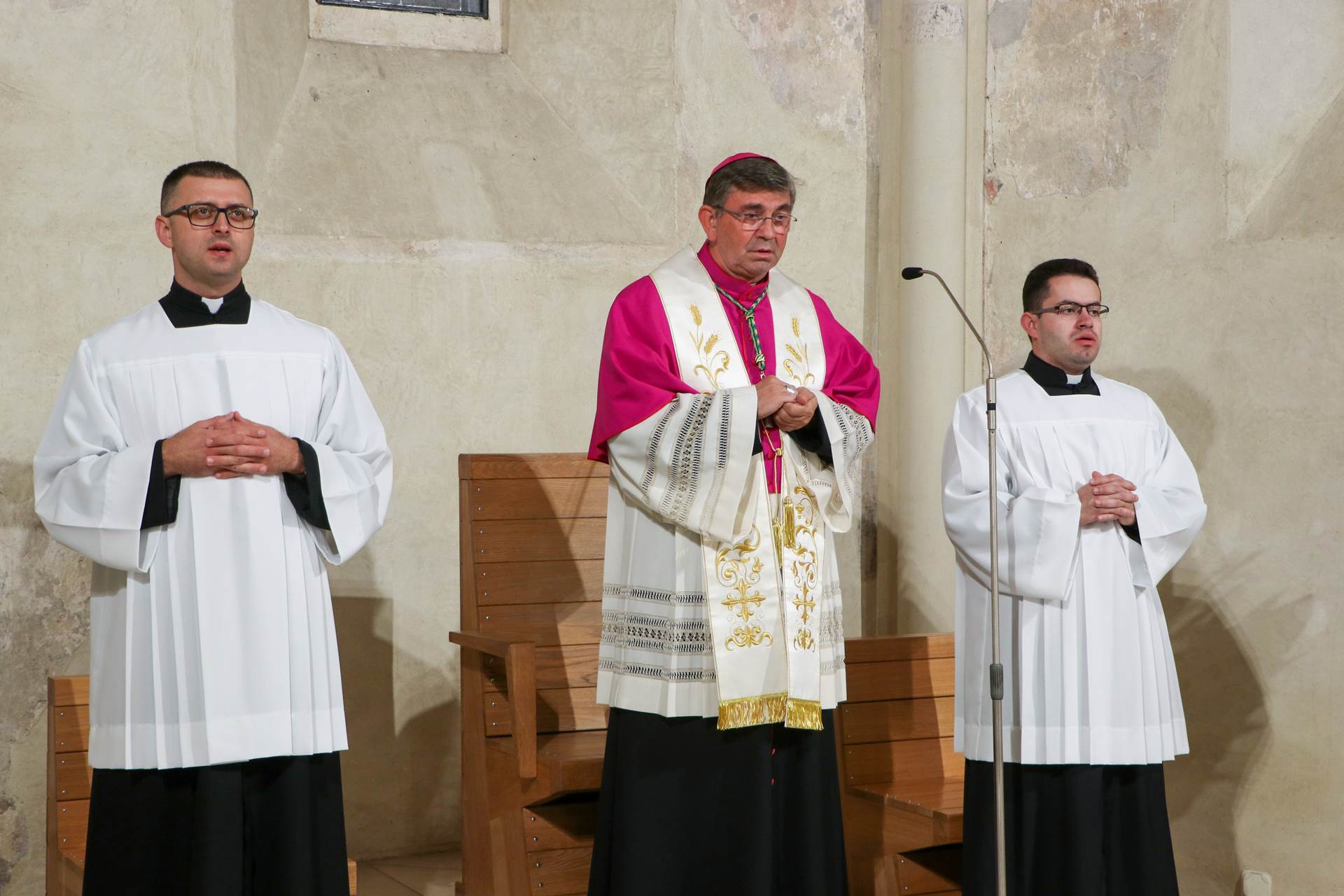 Na početku bdjenja okupljene mlade, članove molitvenih zajednica, bogoslove, kolegijaše i druge vjernike pozdravio je požeški biskup Ivo Martinović. Potaknuo je nazočne vjernike da zajedno s kandidatima zahvale Bogu što ih je pozvao i pomogao da ustraju u duhovnom pozivu. Pojasnio im je kako crkveni propisi traže od onih koji primaju sveti red, službu ili poslanje u Crkvi da prije toga polože Ispovijest vjere i prisegu. Poželio je kandidatima da taj čin bude potvrda njihova cjelovitog odgovora Bogu i predanja do kraja života.