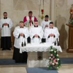Uslijedilo je euharistijsko klanjanje pred Presvetim Oltarskim Sakramentom koje je predvodio prefekt u požeškom Kolegiju Marko Gerendaj, a pjesmom su ga animirali mladi iz požeških župa. Tijekom bdjenja okupljeni vjernici su zajedno s ređenicima, na temelju naviještene Božje riječi, razmatrali otajstvo sakramenta svetoga reda te molili za ustrajnost i vjernost u pozivu koji im je Gospodin uputio i službi koju će im Crkva povjeriti te za postojeća i nova duhovna zvanja u Požeškoj biskupiji.