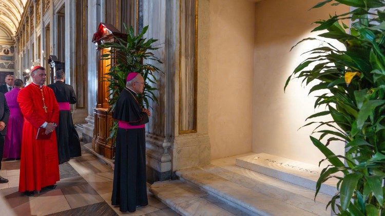Na završetku večernje molitve, mons. Peña Parra pomolio se pred grobom pape Franje, simbolično povezujući poruku vjere, povjerenja i duhovne obnove koju bazilika Svete Marije Velike nosi kroz stoljeća.