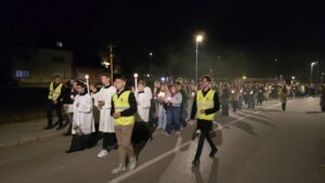 Potom su mladi zapalili svijeće te u procesiji uz molitvu krunice hodali prema varaždinskoj katedrali. U katedrali je don Ivan Šibalić predslavio misu, u kojoj je mladima uputio snažnu poruku o vjerničkom hodu u svjetlu vjere. U homiliji je govorio o svjetlu Kristovu koje vjernik prima na krštenju, i koje treba gorjeti kroz cijeli život. To svjetlo, kazao je, nije zemaljski plamen, nego duhovna prisutnost Krista koji čovjeku otvara oči i pokazuje mu da nije sam: „Svjetlo Kristovo ne treba vosak ni fitilj, vjetar ga ne može ugasiti. To je svjetlo koje obasjava onaj drugi svijet, Božji svijet“, rekao je don Ivan.