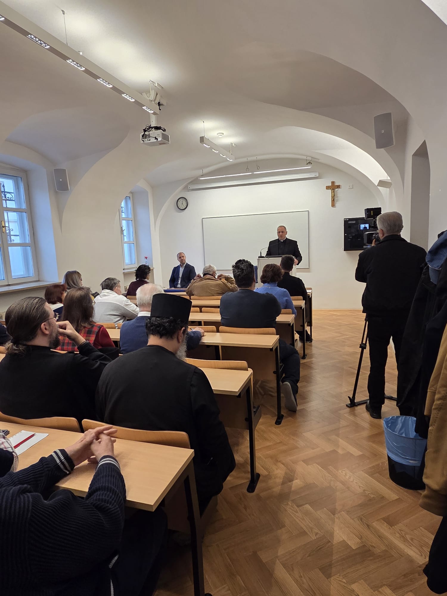 Predavanje su održali izv. prof. dr. sc. Daniel Patafta i dr. sc. Ivan Pleše, koji su predstavili povijesne, teološke i društvene okolnosti raskola između Istočne i Zapadne Crkve 1054. godine. Istaknuli su da Veliki raskol nije bio izolirani događaj, nego vrhunac dugotrajnoga procesa obilježenog teološkim sporovima, pitanjem papinskoga primata, dodatkom Filioque i složenim odnosima između Rima i Carigrada.