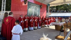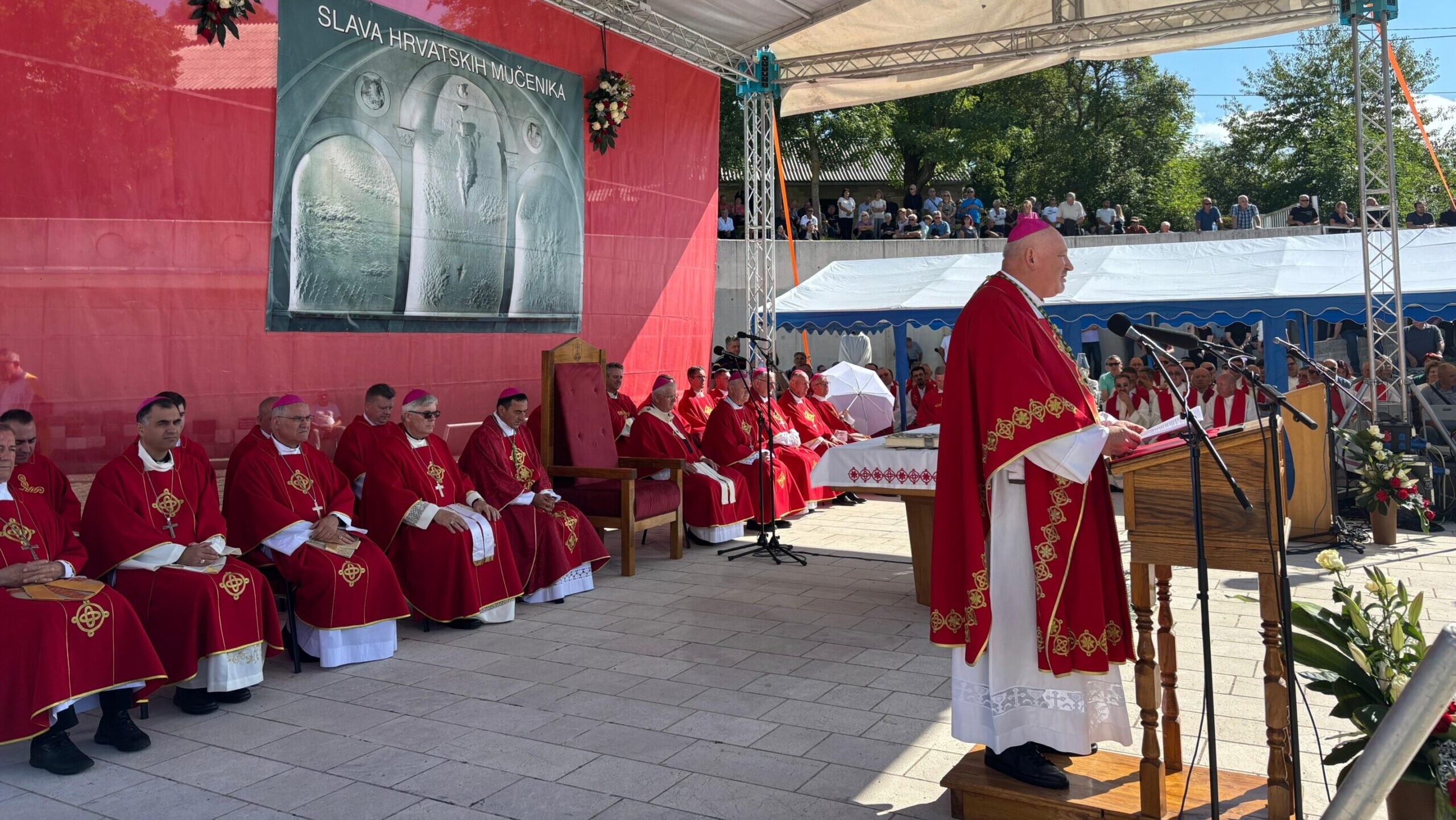 U pozdravnom govoru prije mise biskup Medo potaknuo je „neka krv hrvatskih mučenika, prožeta vjerom i ljubavlju, bude za nas blagoslov i nadahnuće da i mi budemo ljudi Evanđelja u ovom vremenu.“