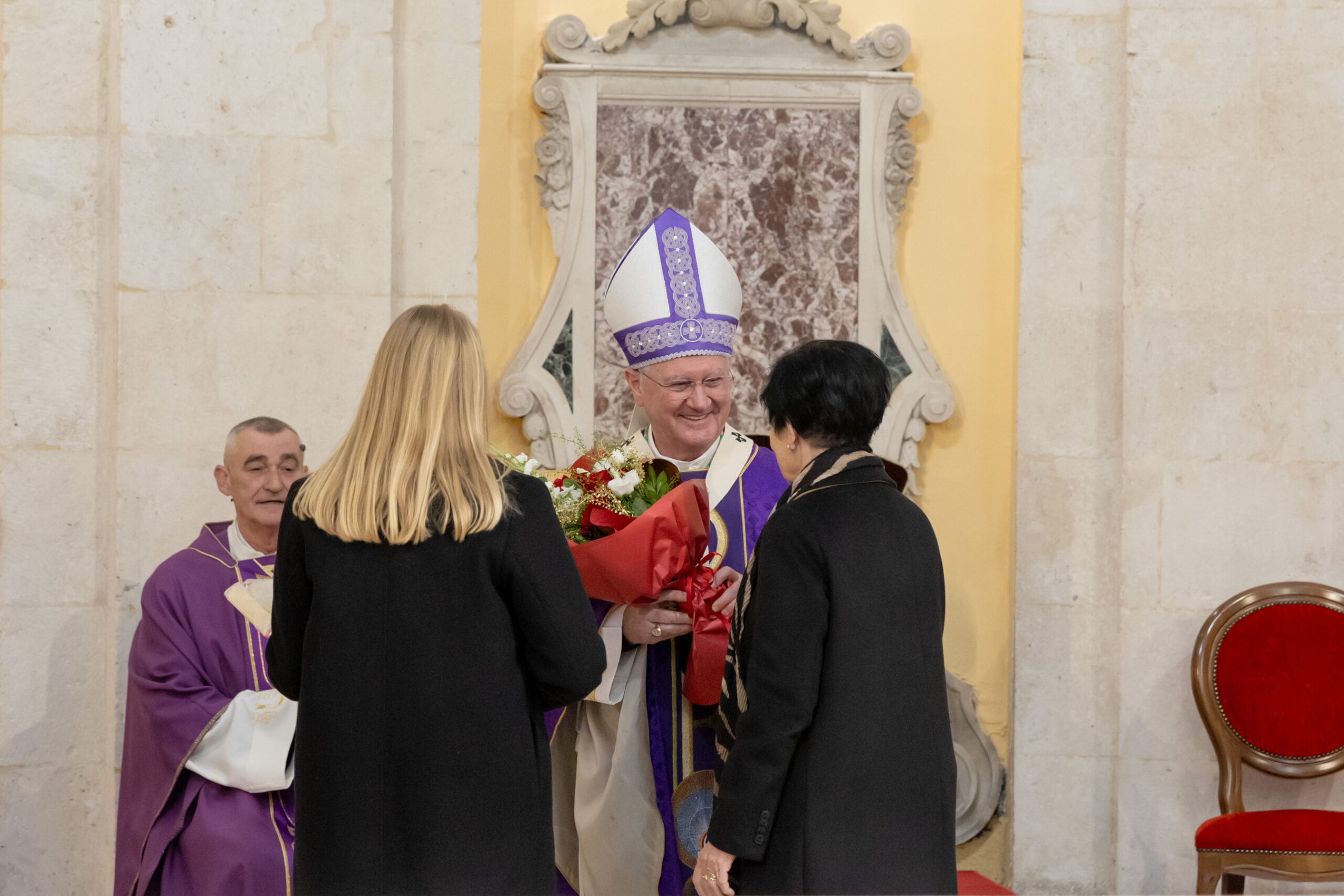 Na kraju mise okupljenima se obratio župnik don Jure Lovrinčević, zahvalivši nadbiskupu na tradicionalnom božićnom pohodu župi i katedrali te istaknuvši da su njegova riječ i prisutnost bile snažno ohrabrenje vjernicima. Posebno je izdvojio nadbiskupovu misao da je strpljivost aktivna krepost, odnosno aktivno iščekivanje ispunjenja Božjih obećanja u životu, te je izrazio nadu da će zajednica ustrajati u vjernosti Bogu.