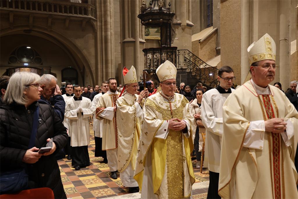 Na misnom slavlju koncelebrirali su umirovljeni zagrebački nadbiskup kardinal Josip Bozanić, pomoćni zagrebački biskupi mons. Ivan Šaško, mons. Mijo Gorski, mons. Vlado Razum i mons. Marko Kovač, kanonici Prvostolnog kaptola zagrebačkog i prebendari Prvostolne crkve zagrebačke te nadbiskupski tajnik vlč. Domagoj Topić.
