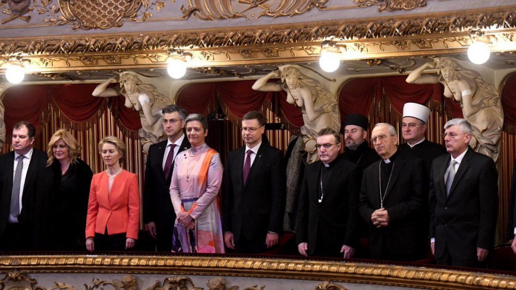 Početak hrvatskog predsjedanja Vijećem Europske unije obilježen je u četvrtak 9. siječnja dolaskom članova Europske komisije u Zagreb i koncertom u Hrvatskom narodnom kazalištu kojem su nazočili predsjednik Hrvatske biskupske konferencije zadarski nadbiskup Želimir Puljić i zagrebački nadbiskup kardinal Josip Bozanić.