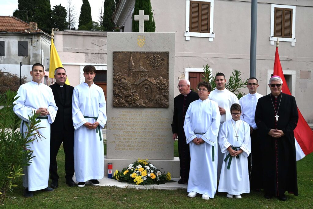 „Htjeli smo postaviti spomenik da ostane trajno u sjećanju našim vjernicima i budućim pokoljenjima, da znaju o svojoj povijesti. Njome smo htjeli povezati tri jubileja: jubilej Svete godine 2025., 1100 godina Hrvatskog kraljevstva i 160 godina od posvete župne crkve Rođenja BDM u Benkovcu“, rekao je župnik Buljat. Taj spomenik podigli su župljani Benkovca 2025. godine, a na njemu su uklesana i slova u spomen na ta tri jubileja.