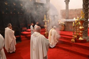 Mons. Zgrablić je za vrijeme mise oprao noge dvanaestorici predstavnika iz župa grada Zadra, a nakon mise odnio je Sveto otajstvo u Božji grob u pokrajnju lađu katedrale, gdje je puk ostao u klanjanju i molitvi.