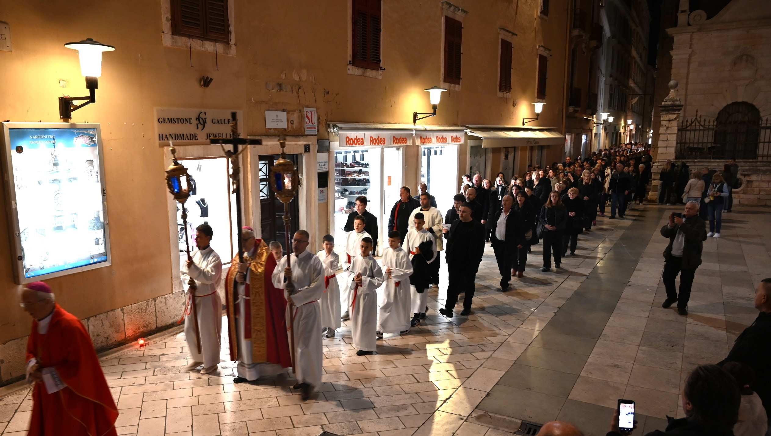 Nakon obreda u katedrali, nadbiskup Zgrablić nosio je križ u procesiji od katedrale sv. Stošije, središtem grada do crkve sv. Šime, gdje je puku udijelio blagoslov s križem.