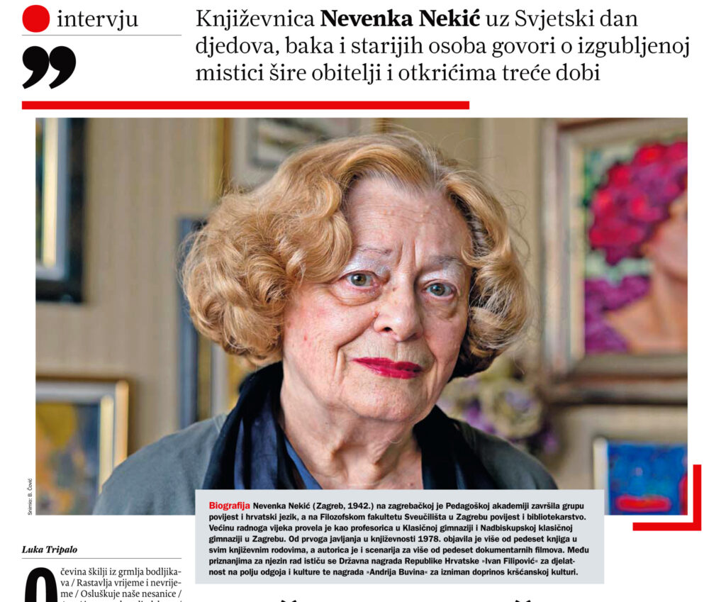 „Obitelji bez bake i djeda uvijek nešto nedostaje“, tvrdi književnica Nevenka Nekić, čiji pripovjedački opus govori o ulozi djedova i baka. „I naši su životi ukorijenjeni u baštini provincije i seljaka; iz anonimnoga puka niču naša imena i prezimena znamenitih umjetnika i znanstvenika. Upravo su djedovi i bake i danas čuvari one opuštajuće magme iz koje izviru daroviti unuci“, rekla je u intervjuu za Glas Koncila, upozorivši da „sve blago treće dobi danas mahom ostaje neiskorišteno“. “Starije danas posve isključujemo iz rada, što u materijalističkom svijetu znači da ih isključujemo i iz obitelji”, dodala je.