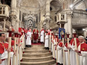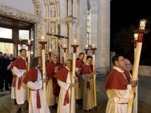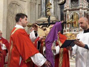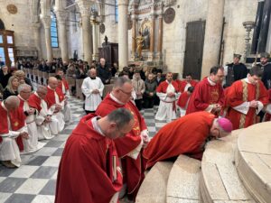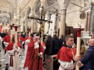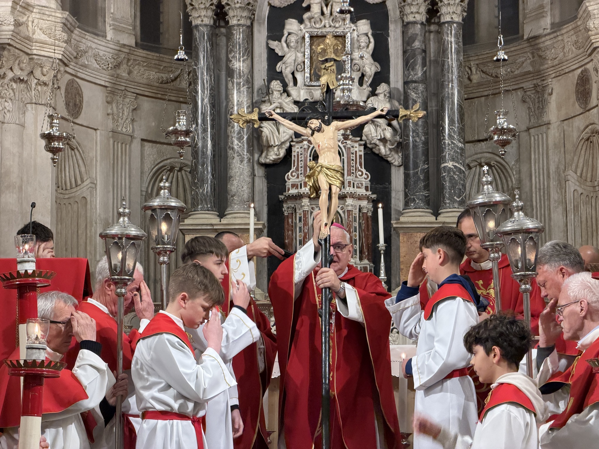 Obredi su potom nastavljeni poklonom križu, obredom pričesti te procesijom s križem oko katedrale.