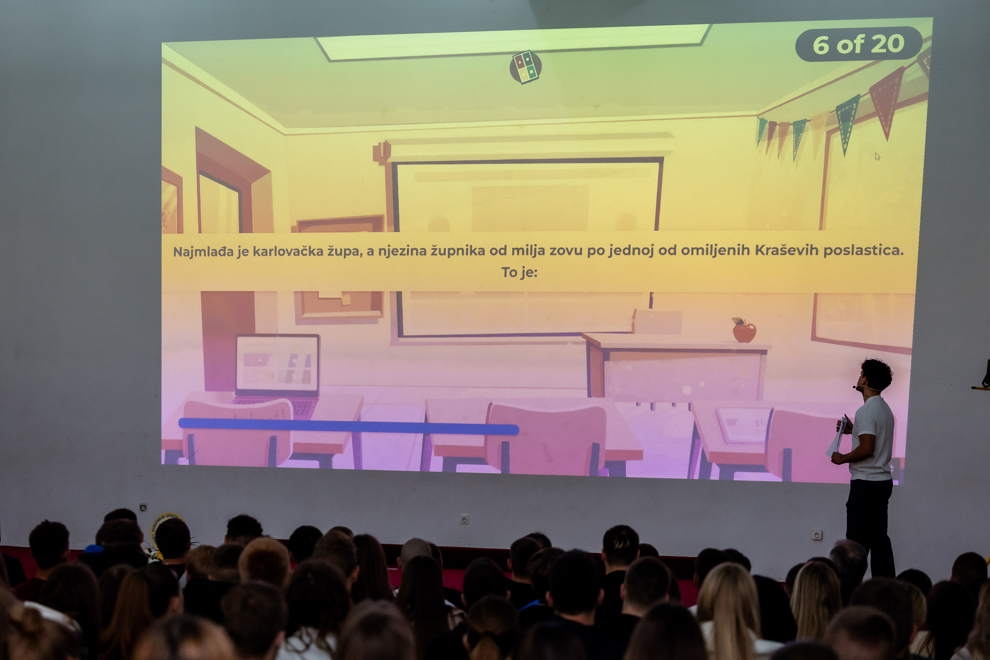 Uslijedio je kahoot kviz o povijesti i životu njihovih karlovačkih župa. Uz kviz srednjoškolci su pratili scenski prikaz o borbi čovjeka između Božje ljubavi i raznoraznih napasti koje ga žele odvojiti od Boga u izvedbi ZAMAK-ovca. Pri kraju prvog dijela susreta studenti Katoličkog bogoslovnog fakulteta i Hrvatskog katoličkog sveučilišta predstavili su svoje studije.