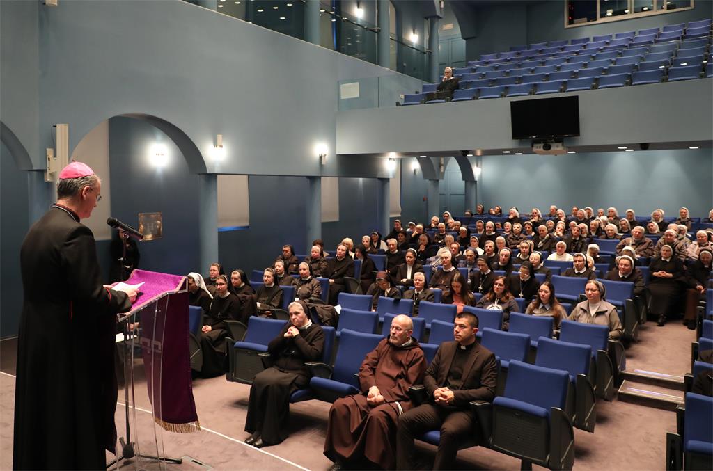 „Među nas se lako može uvući farizejska sigurnost koja ne računa s time da Bog i danas može učiniti nešto novo, neočekivano, možda upravo preko onih koje bismo spontano prezreli, otpisali ili zanemarili? Ako mu iskreno dopustimo da nam prosvijetli oči srca, tada ćemo u svome redovničkom pozivu ponovno otkriti radost gledanja Crkve, sestara i svijeta Kristovim pogledom“, poručio je mons. Kutleša.