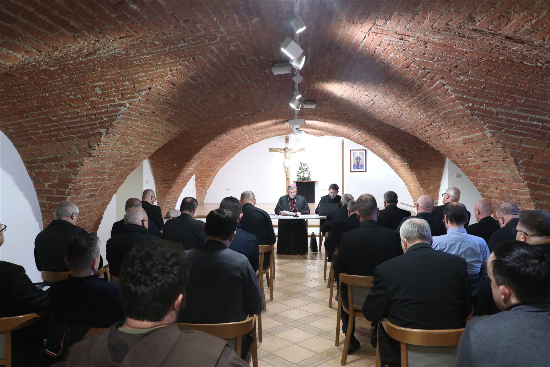 Nakon molitve Trećega časa vijećnike je pozdravio biskup Ivo Martinović, istaknuvši kako je Prezbitersko vijeće važno za život jedne mjesne Crkve jer kao savjetodavno tijelo pomaže biskupu u upravljanju biskupijom s posebnom zadaćom unapređivanja pastoralne dobrobiti povjerenog mu dijela Božjeg naroda, upozorivši pritom na kanone 495-502 Zakonika kanonskog prava. Biskup je još dodao da se život požeške mjesne Crkve „uklapa u Redovni jubilej koji nas poziva da razmišljamo o onom što Gospodin redovito, ali i izvanredno čini u našem životu te darovima Duha Svetoga koji nam pomažu u našem životu i vršenju povjerenog poslanja. S druge pak strane, 1100. obljetnica Splitskih crkvenih sabora i početaka Hrvatskoga kraljevstva povezuju nas s poviješću i daju nam snagu za budućnost, a uz to nas podsjećaju da su kroz cijelu povijest Crkve i našeg naroda svećenici imali nezamjenjivu ulogu koja nije prestala do danas“, kazao je biskup ustvrdivši da ta uloga sa sobom nosi i odgovornost za vjeru našeg naroda, pastoralno djelovanje i za sve ono na što nas Bog poziva u našem današnjem vremenu u čemu je ključno da budemo svjedoci njegove ljubavi i evanđelje. Poželio je vijećnicima da u tom duhu i svijesti odgovornosti za život mjesne Crkve i „za spasenje duša“ započne njihov petogodišnji mandat u Prezbiterskom vijeću.