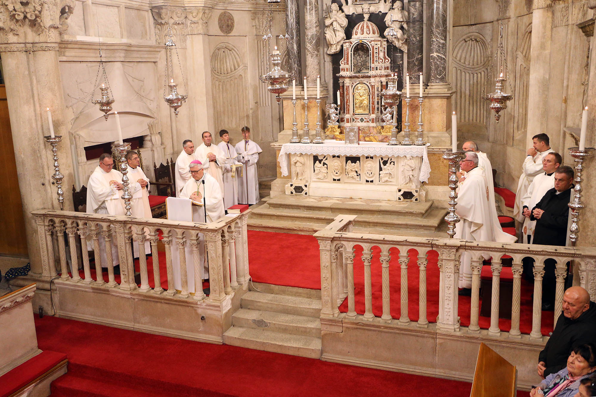 Koncelebrirali su generalni vikari Zadarske nadbiskupije i Šibenske biskupije, Ante Sorić i Tomislav Subotičanec te više svećenika Zadarske nadbiskupije.