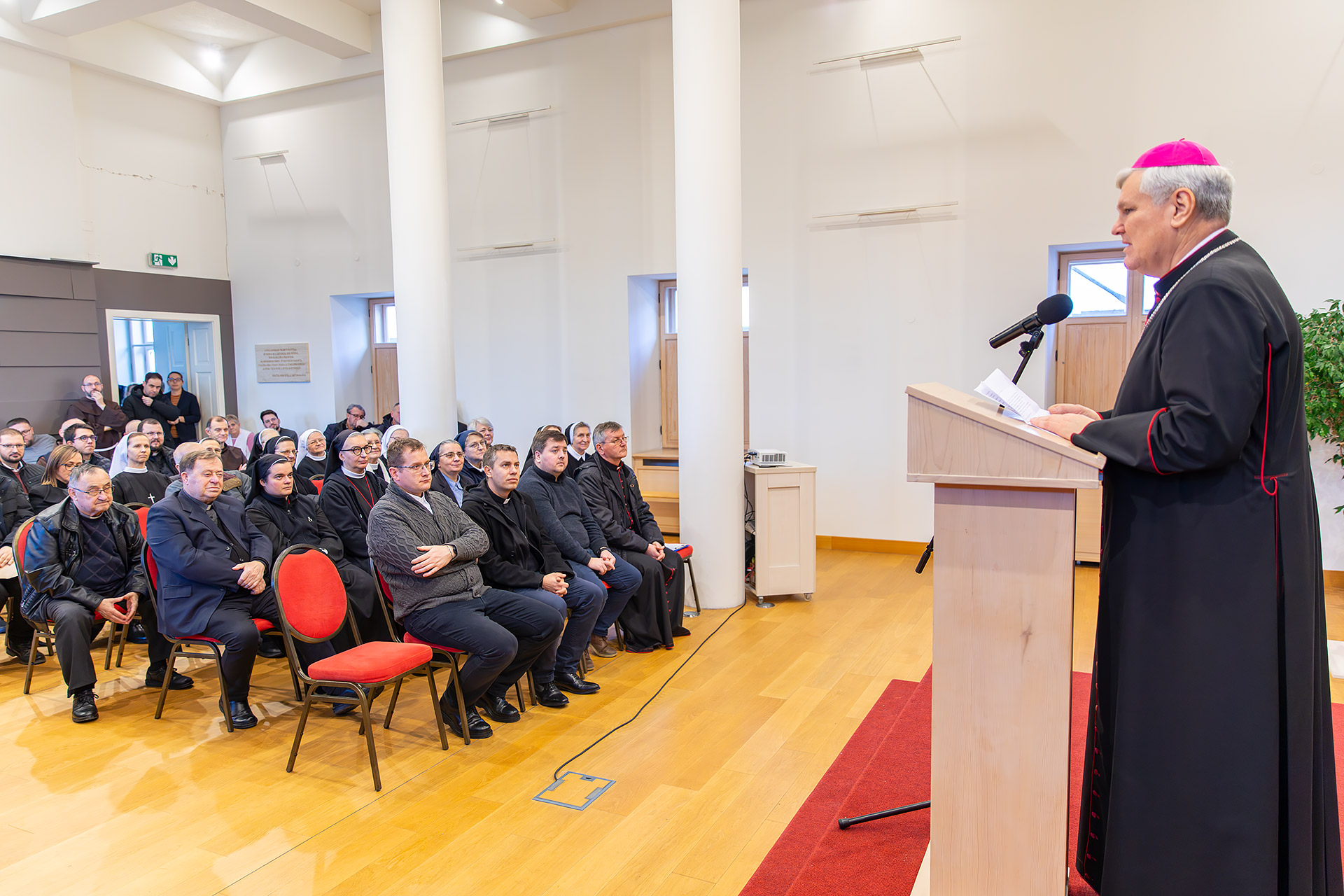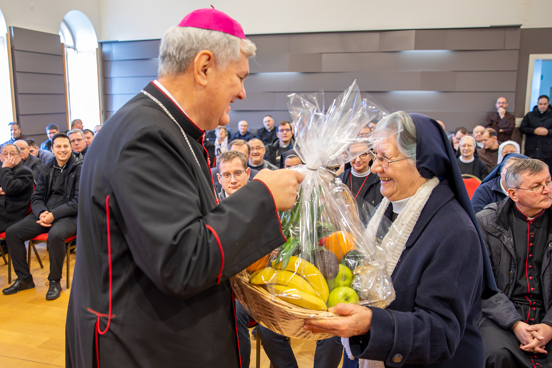 Uime redovnika i redovnica okupljenima se obratila s. Snježana Pavić, zahvalivši Bogu za proteklu jubilarnu godinu. Naglasila je važnost praštanja i povjerenja u Boga u vremenu obilježenom nesigurnostima, ratovima i patnjama mnogih ljudi. Zahvalila je biskupu na njegovoj blizini, brizi i potpori redovničkim zajednicama, kao i na posebnoj osjetljivosti prema najslabijima, obiteljima, djeci i mladima, što se očituje u pastoralnim i odgojnim projektima biskupije.