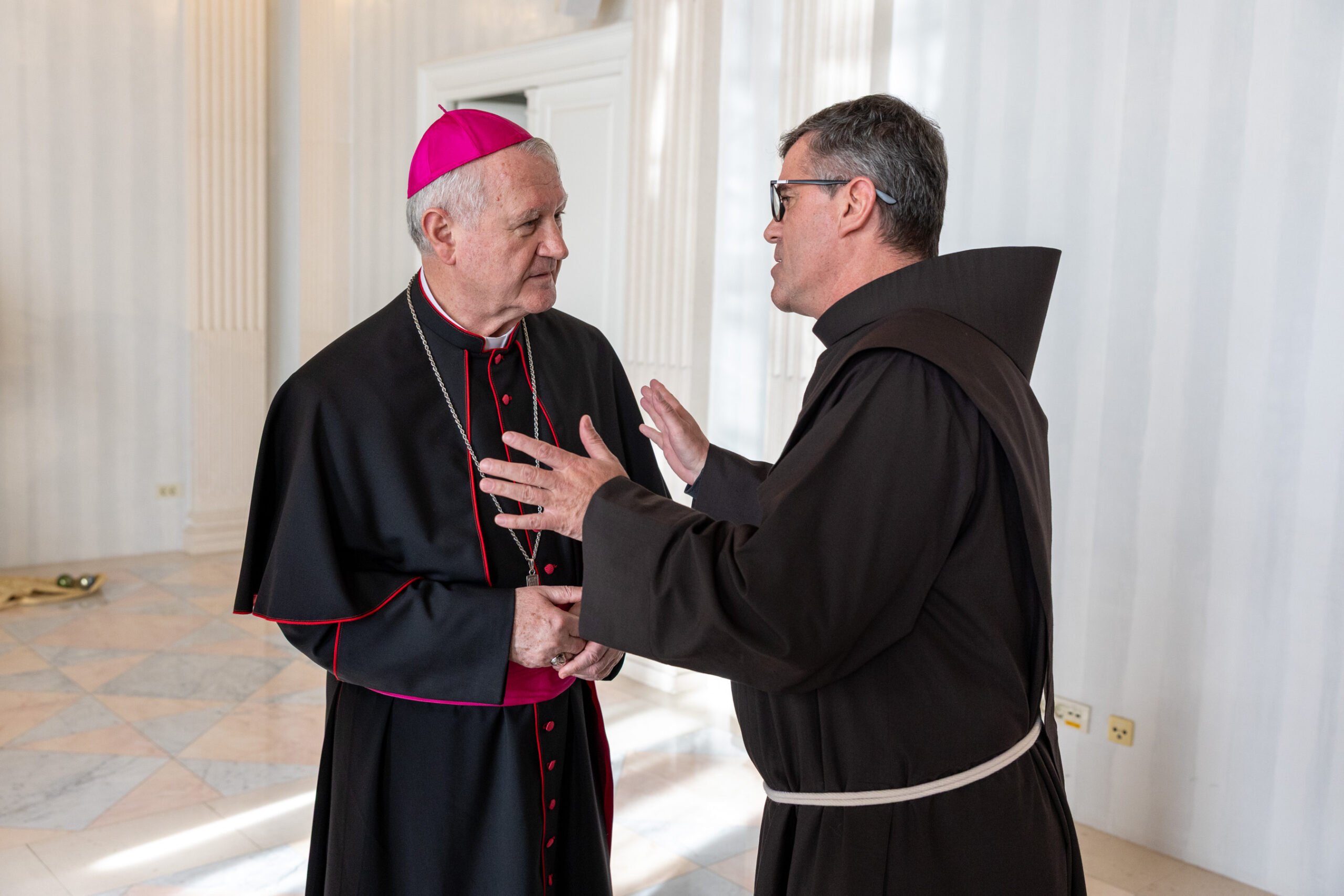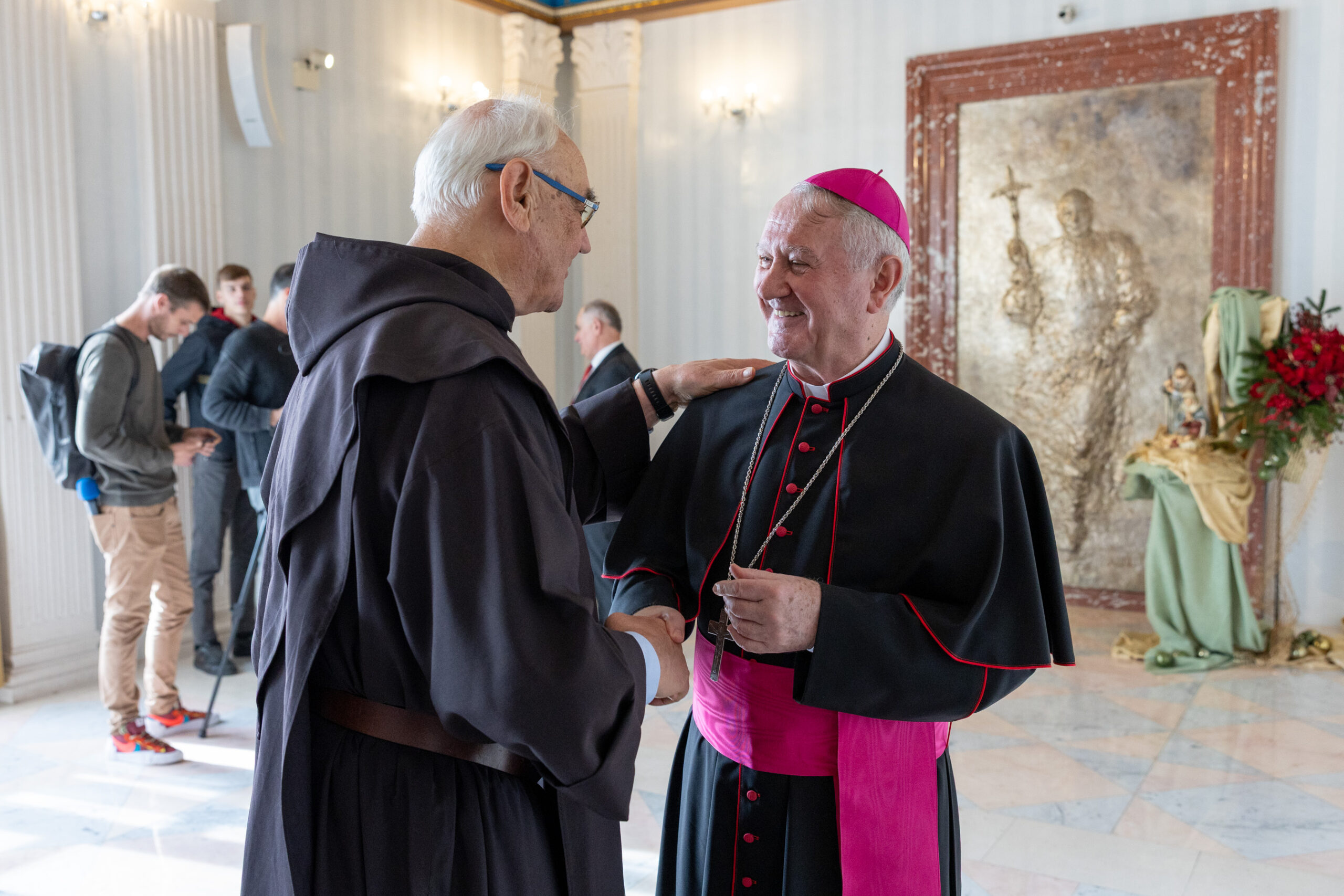 Na kraju je svoju čestitku uputio nadbiskup Križić, koji je u obraćanju okupljenima podsjetio na važne događaje koji su obilježili godinu na izmaku te na izazove i projekte koji stoje pred Crkvom i društvom. Osvrnuo se na smrt pape Franje i izbor novoga pape Lava XIV., istaknuvši kontinuitet Crkve i njezino poslanje u suvremenom svijetu. Spomenuo je i velike crkvene i nacionalne obljetnice, osobito 1100. obljetnicu Hrvatskoga Kraljevstva i Splitskih crkvenih sabora, kao i Posvetu hrvatskoga naroda Presvetom Srcu Isusovu, naglasivši njezinu duhovnu važnost i aktualnost.