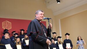 Pozvao je maturante da nastave razvijati svoje talente i darove. „Svatko od vas primio je neprocjenjive i razne darove od Boga. Otkrivajte ih i razvijajte kako biste sutra mogli doprinijeti boljitku društvu – kao studenti, vjernici, građani, kao nositelji hrvatskog društva, politike i gospodarstva“, rekao im je biskup.