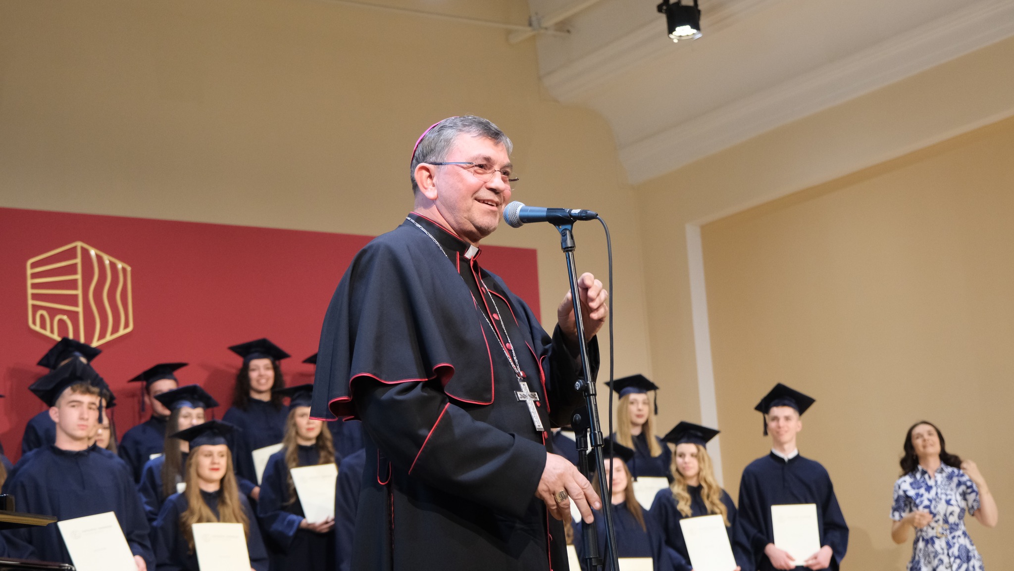 Potaknuo je maturante na odgovornost i razboritost: „Imate jedan život koji je svet i neprocjenjiv. Nastojte najprije upoznati sebe i svoje dostojanstvo. Volite sebe, ali budite oprezni – nemojte svima vjerovati bez razmišljanja. Roditelji su oni kojima se možete i trebate uvijek s povjerenjem obratiti. Oni su vas do danas pratili kroz djetinjstvo i odgoj, i žele vam samo dobro.“ Zahvalio je roditeljima, nastavnicima i školskom osoblju na njihovom trudu i ulozi u obrazovanju učenika.