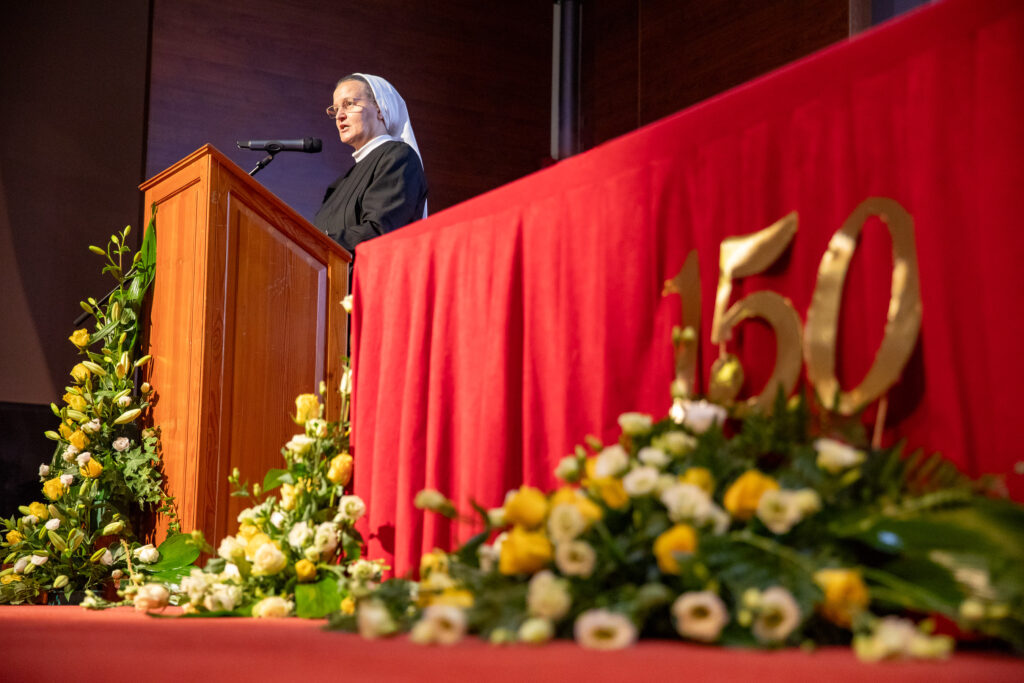 Podsjetila je na brojne naraštaje sestara koje su u bolnicama, školama, vrtićima i župama svjedočile evanđeosku ljubav i služenje te na zahvalnost koju duguju svim dobročiniteljima i suradnicima. Naglasila je da ova obljetnica predstavlja i poziv na obnovu zajedništva s Crkvom i društvom te na spremnost da sestre i dalje budu blizu onima koji su u potrebi.