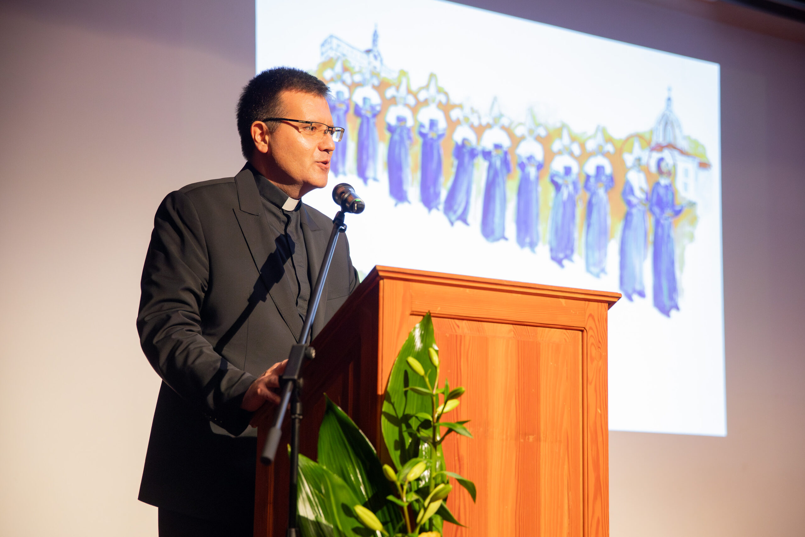 Uime splitsko-makarskog nadbiskupa Zdenka Križića obratio se generalni vikar Splitsko-makarske nadbiskupije mons. Franjo Frankopan Velić. Istaknuo je zahvalnost za svaku sekundu predanog djelovanja sestara tijekom stoljeća i pol. Svoju je poruku izrazio i kroz simbolično računanje vremena: „150 godina, to je 54 787 dana, 1 314 880 sati ili 4 761 676 800 sekundi. Za svaku sekundu koju ste ovdje provele, za svako dobro koje ste učinile, za svu ljepotu koju ste darovale – nadbiskupija vam je iskreno zahvalna.“ Pozvao je sestre da s nadom gledaju u budućnost, jer ono što se čini iz ljubavi ostaje za vječnost.