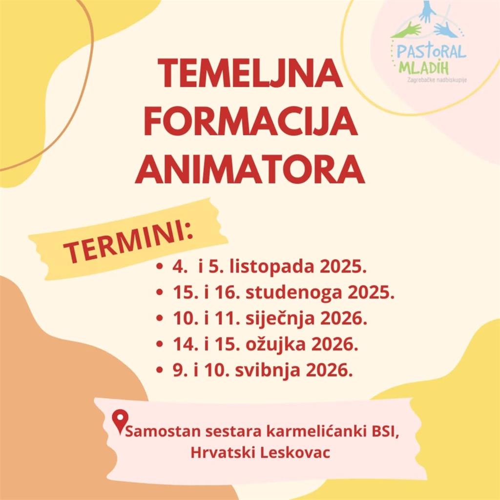 U Zagrebačkoj nadbiskupiji provodit će se tijekom pastoralne 2025./2026. uobičajeni program formacije animatora „Mladi za mlade“, usmjeren kao pomoć za osposobljavanje mladih za pomoć svećenicima u radu s djecom i mladima, izvijestio je Tiskovni ured Zagrebačke nadbiskupije.