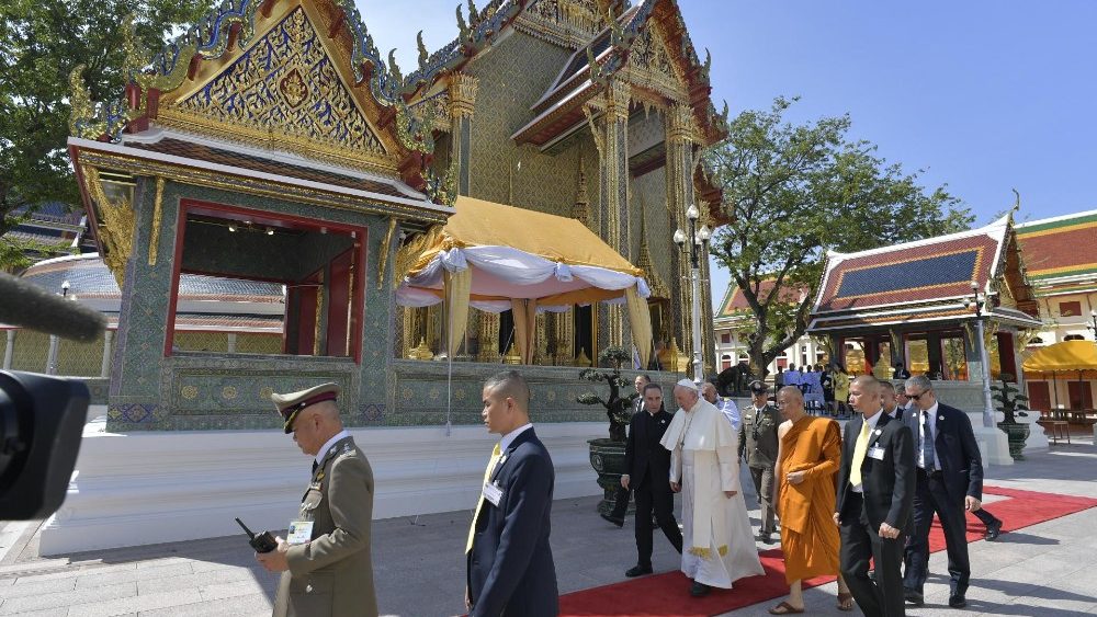 Drugi dan boravka pape Franje na Tajlandu 21. studenoga ispunjen je bogatim programom. Već ujutro susreo se u arhitektonski zanimljivoj palači u sjedištu Vlade s predstavnicima civilnih vlasti, a potom u sjedištu budističke zajednice s vrhovnim budističkim poglavarom. Uslijedio je posjet bolnici. Slijedi privatni susret s kraljem i na kraju misa na nacionalnom stadionu u Bangkoku na koji može stati 65.000 ljudi.