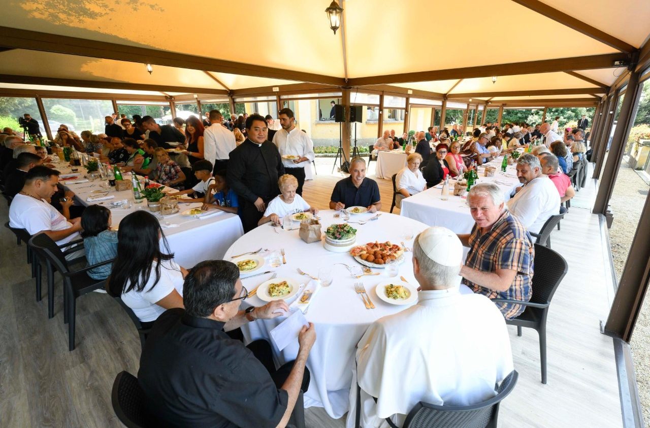 Foto: Vatican Media / Papa pozdravlja uzvanike prije ručka u Borgo Laudato Si’