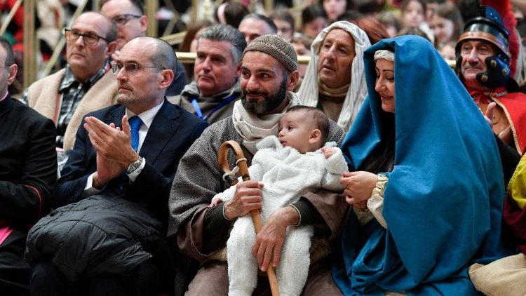 Foto: Vatican Media / Sudionici uprizorenja „Živih jaslica“ u bazilici sv. Marije Velike