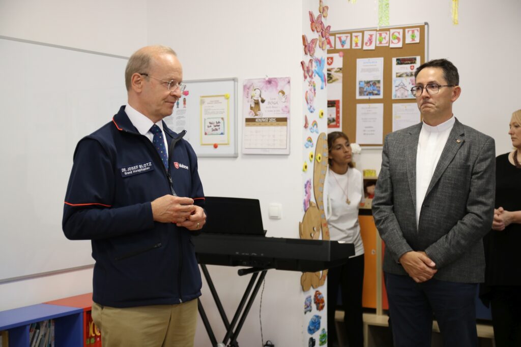 Prigodnim se govorom okupljenima zatim obratio dr. Josef Blotz, Grand Hospitaller Suverenog Viteškog Malteškog reda. Istaknuo je svoje dojmove viđenim: „Ostao sam bez riječi pred onim što se ovdje stvorilo i sagradilo. To što je izgrađeno pokreće srce.“ Zahvalio je biskupima i braći Reda na potpori, naglasivši kako se iz „ničega stvorilo puno“ i da svi mogu biti ponosni na zajednički rad. U svom govoru osvrnuo se i na životni put kao svojevrsno hodočašće koje traži znakove vodilje. „Na tom putu u ovoj prostoriji postoje dva znaka – križ i križ Malteškog reda. Kada ljudi u svome životu prate taj znak, to postaje hodočašće. Mi ćemo vas uvijek pratiti na tome putu i u tome duhu,“ poručio je okupljenima.